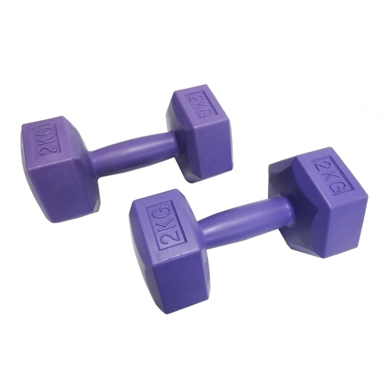 Zestaw hantli treningowych 2x2kg pokrytych PCV . Hantle idealne na siłownie, salę gimnastyczną czy do domu. Ciężarki pokryte odpornym tworzywem PCV zapobiegającym uszkodzeniu podłogi, świetny nowoczesny design.