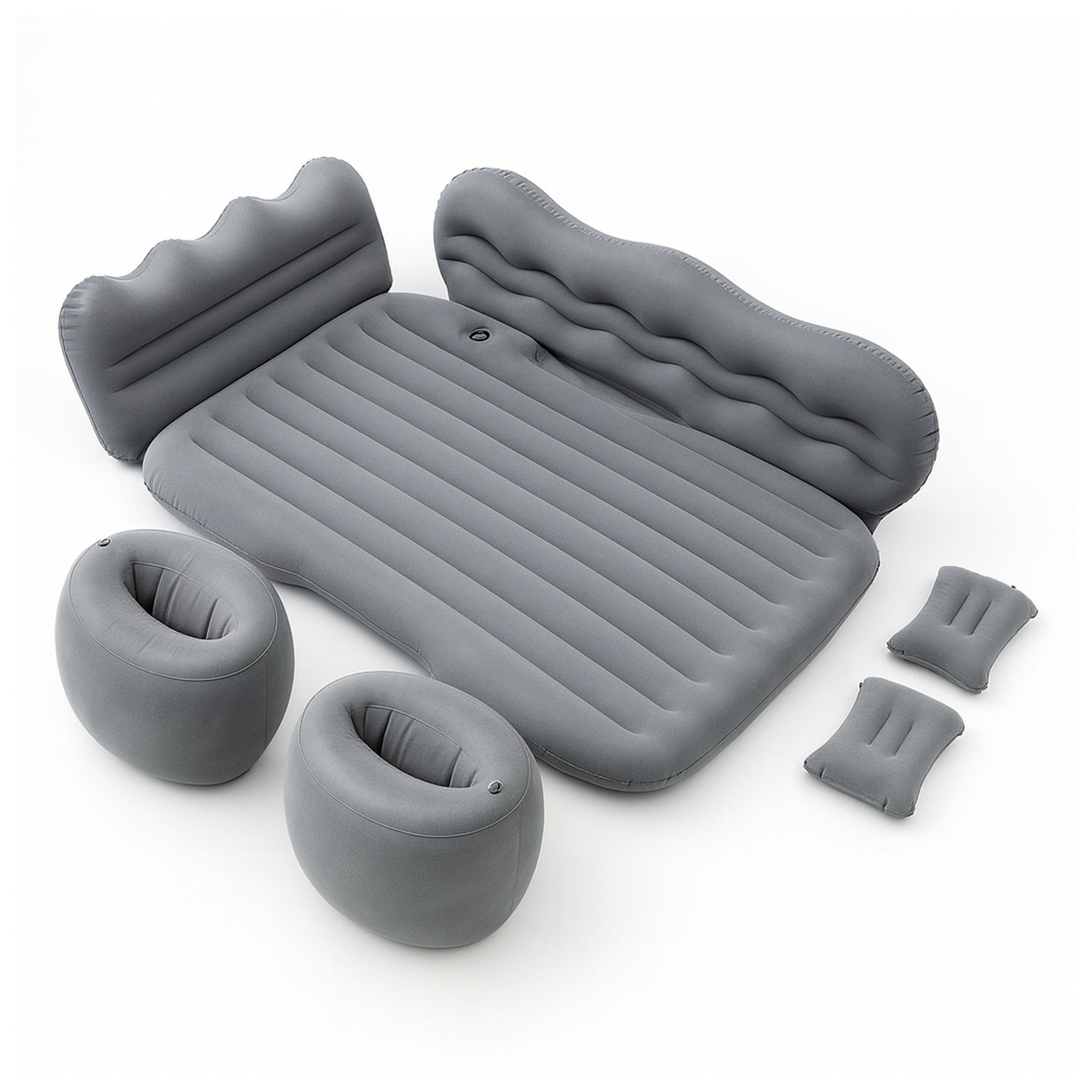 Dmuchany materac samochodowy to praktyczne rozwiązanie, które zamienia tylne siedzenie auta w wygodne miejsce do odpoczynku. Dzięki dopasowanemu kształtowi i stabilizującym podparciom zapewnia komfortowy sen podczas podróży lub postojów. Wykonany z miękkiego, przyjemnego w dotyku materiału, jest łatwy do napompowania i złożenia. Idealny na dłuższe wyjazdy, biwaki, dla dzieci lub jako dodatkowe miejsce do relaksu w samochodzie. Wymiary: 128x76, ok. 15 cm grubości W zestawie: 2 poduszki 34x22x11cm 2 owalne podstawy 42x32cm pompka samochodowa zestaw naprawczy torba do przechowywania