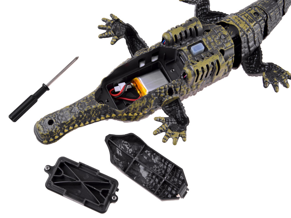 Und damit kommen wir zum Kern der Sache, nämlich dem ferngesteuerten Krokodil. Für Kinder, die diese gefährlichen Kreaturen mögen, ist es ein wahres Vergnügen. Es ist offensichtlich, dass es schwierig ist, einen Alligator zu Hause zu halten, mit ihm spazieren zu gehen, usw.
