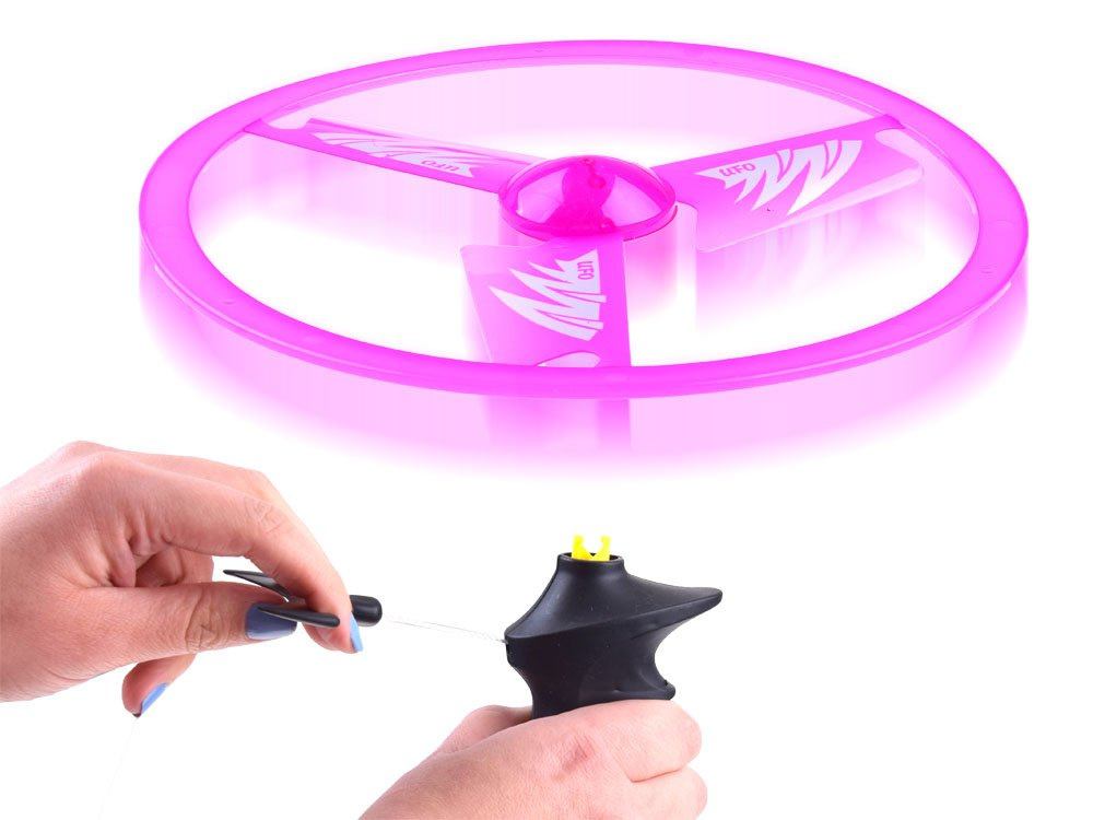Erstaunlich fliegende Scheibe, Frisbee, fliegende UFO für das Spielen im Park, im Garten im Freien. Das Nachziehspielzeug und die Lichteffekte sorgen für viel Bewegung und Spaß. Hervorragende Scheibe zum Spielen im Park und am Strand. Die fliegende Untertasse ist die beste Art, sich im Freien zu bewegen. Das Spielzeug bietet sensationelle Lichteffekte beim abendlichen Spiel dank der mitgelieferten Batterien, die die LEDs im Spielbrett zum Leuchten bringen.