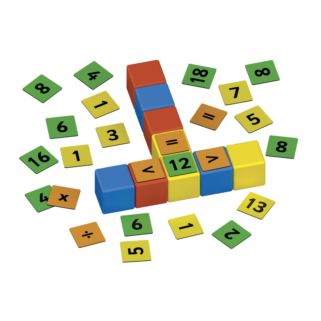 Probieren Sie das Homeschooling spielerisch mit den Geomag Magicube Würfeln aus und beobachten Sie, wie Ihr Kind lernt, beginnt, Ziffern zu unterscheiden und erste Berechnungen zu erfinden. Die Würfel sind einzigartig darin, dass sie sich von allen sechs Seiten gegenseitig anziehen und es so möglich ist, 3D-Kombinationen zu bilden. Das Set enthält 10 magnetische Würfel aus 100% recyceltem Kunststoff und 45 beidseitige Clips. Gerade Zahlen, ungerade Zahlen und mathematische Operationen sind farblich unterschieden. Das Baukastenset fördert die Kreativität, die Feinmotorik und stimuliert durch das Spiel die Neugier, die Suche nach Lösungen und die Erforschung der Grundlagen von Mathematik und Magnetismus. Kann auch ohne Clips als magnetisches Konstruktionsspielzeug verwendet werden. Geeignet für Kinder ab 3 Jahren, hergestellt in der Schweiz.