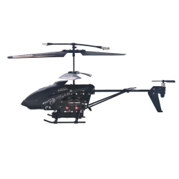 Zdalnie sterowany helikopter 3,5CH z wbudowaną kamerą video (rejestracja filmów w kolorze). Żyroskop zapewnia równowagę lotu, zapobiega obracaniu się śmigłowca wokół własnej osi. Żyroskop można regulować dowolnie za pomocą trymera umieszczonego na pilocie. Dane: Wymiary helikoptera 23x11,5x5 cm Czas lotu: 8-10 minut Czas ładowania: 30-40 minut Zasięg do 20m W zestawie: - helikopter R/C z kamerą - ładowarka - czytnik USB kart micro SD - pilot zdalnego sterowania - kolorowe opakowanie - instrukcja w języku polskim