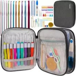 Dieses einzigartige Set ist für alle, die ihr Häkelabenteuer begonnen haben oder gerade erst beginnen, sehr nützlich. Der Materialkoffer enthält bis zu 86 Elemente: Haken, Nadeln, Schere, Lineal und viele andere notwendige Accessoires. Die Häkelnadeln sind aus Aluminium gefertigt, wodurch sie perfekt in der Hand liegen und die Arbeit beschleunigen. Sie sind leicht, stark und haben eine glatte Oberfläche