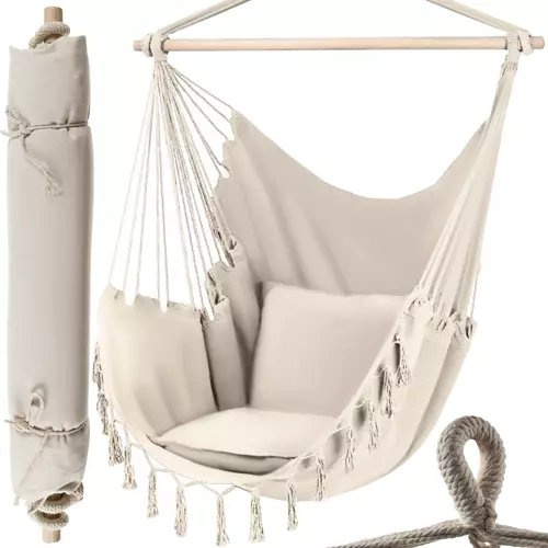 KOMFORTABEL – dieser extrem bequeme und funktionale Hängematte – brasilianischer Sessel, ermöglicht es Ihnen, unter günstigen Bedingungen zu entspannen.Es wird sich hervorragend im Garten, auf der Terrasse, dem Balkon und sogar im Zimmer eignen! Sie können sie während der Nachmittagsruhe, eines kurzen Nickerchens oder der Entspannung mit einem Buch oder einer Zeitschrift nutzen.