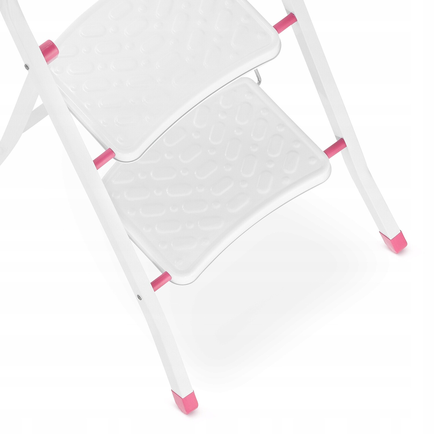 Der Hauptvorteil dieser Tritte ist die stabile Stahlkonstruktion, um hohe Stabilität zu gewährleisten, sowie die rutschfesten breiten Stufen. Spezielle Schutzvorrichtungen an den Beinen der Trittleiter, die vor Ausrutschen und Kratzern auf dem Boden schützen.