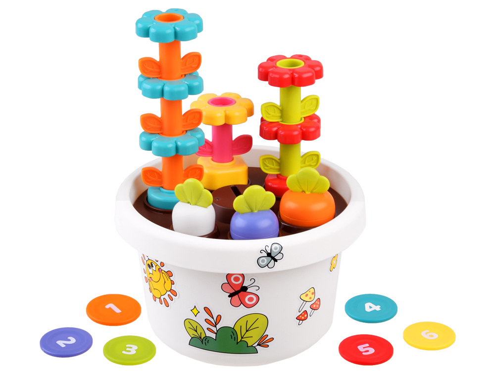 Kinder werden Spaß daran haben, den kleinen Gärtner zu spielen. Sie können nach Belieben Möhren pflanzen und pflücken und Blumentürme bauen.