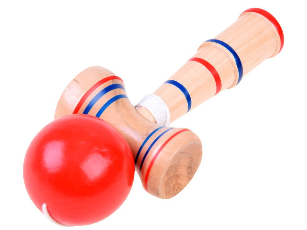 Kendama ist ein einfaches Spiel, mit dem man präzise Handbewegungen üben kann. Das Spielzeug ist vollständig aus Holz gefertigt. Er besteht aus einer Holzkugel mit einem Loch, die mit einer Schnur an einem Hammer mit Hohlräumen befestigt ist. Das Spiel besteht darin, eine Holzkugel so abprallen zu lassen, dass sie schließlich auf den Spieß im Schlegel trifft. Das Spielzeug bietet viele Möglichkeiten, verschiedene Tricks und Jonglagen auszuführen, was zum Spielen anregt und die Geduld trainiert. Kippe den Ball und versuche, ihn mit dem Griff zu fangen. Das Geschicklichkeitsspielzeug bietet stundenlangen Spielspaß und lehrt Geduld und Ausdauer. Ein großer Spaß nicht nur für Kinder.