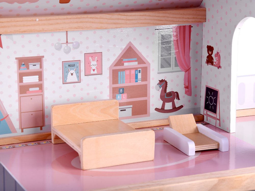 . Jedes Zimmer hat ein Fenster, so dass Sie die Aussicht genießen können. Das Äußere des Hauses ist mit Thuja, Blumen, Topfpflanzen und Laternen geschmückt. Dieses Puppenhaus wird die Erwartungen jedes kleinen Mädchens erfüllen, das von einem eigenen Puppenhaus geträumt hat.
