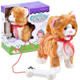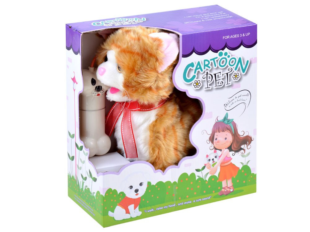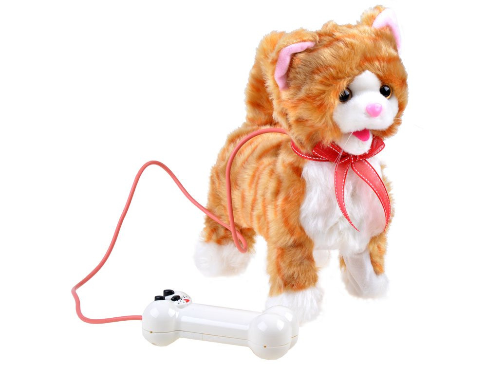 Ein Stofftier ist der Traum der meisten Kinder.Das Kätzchen kann rückwärts und vorwärts laufen, miauen und seinen Schwanz bewegen. Er wird mit einer Fernbedienung in Form eines Würfels bedient. Die Fernbedienung ist an der Leine befestigt, so dass wir die Katze immer bei uns haben. Es gibt 3 Tasten auf der Fernbedienung, um das Tier zu bewegen und zu miauen. Ferngesteuertes (an der Leine) Kätzchen bewegt beim Laufen den Schwanz. Ein ideales Spielzeug für Kinder, die davon träumen, sich um Tiere zu kümmern. Das Spielzeug ist angenehm zu berühren, ideal zum Kuscheln und Streicheln.