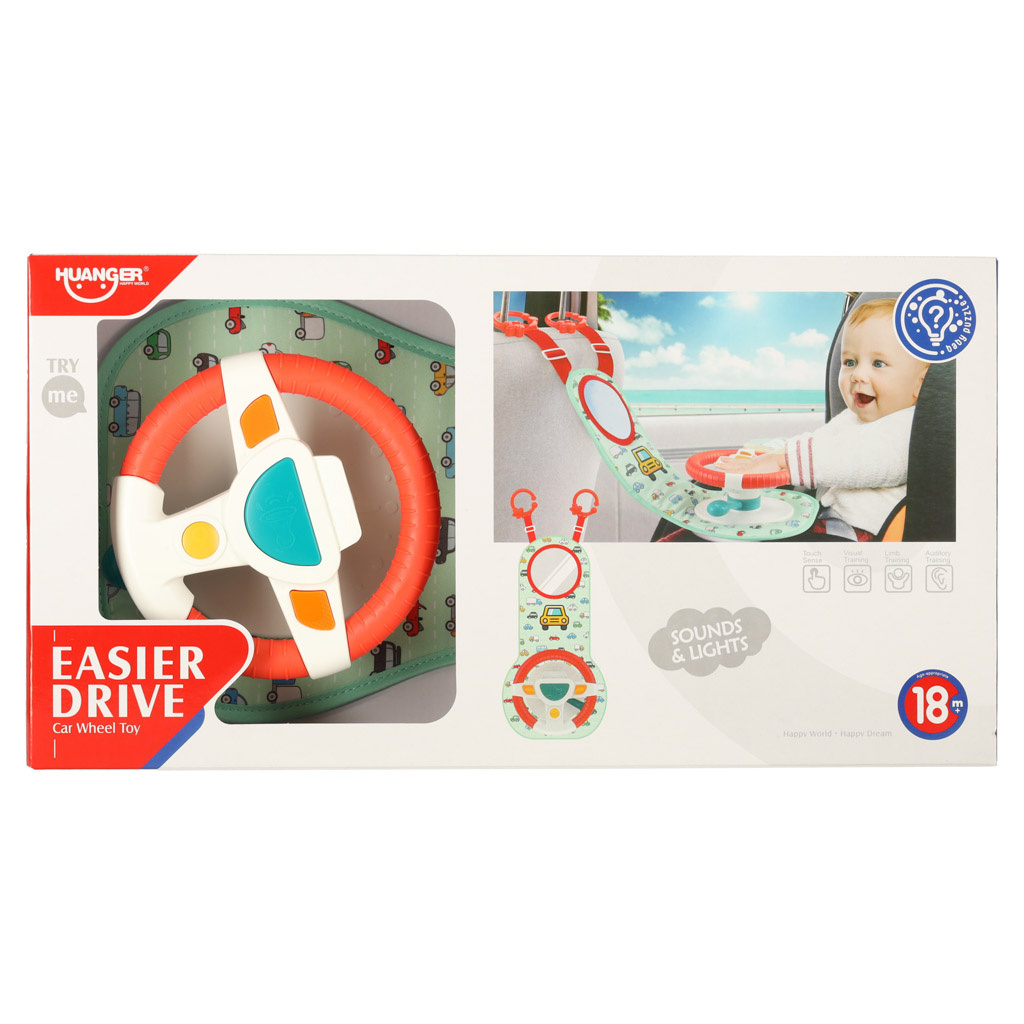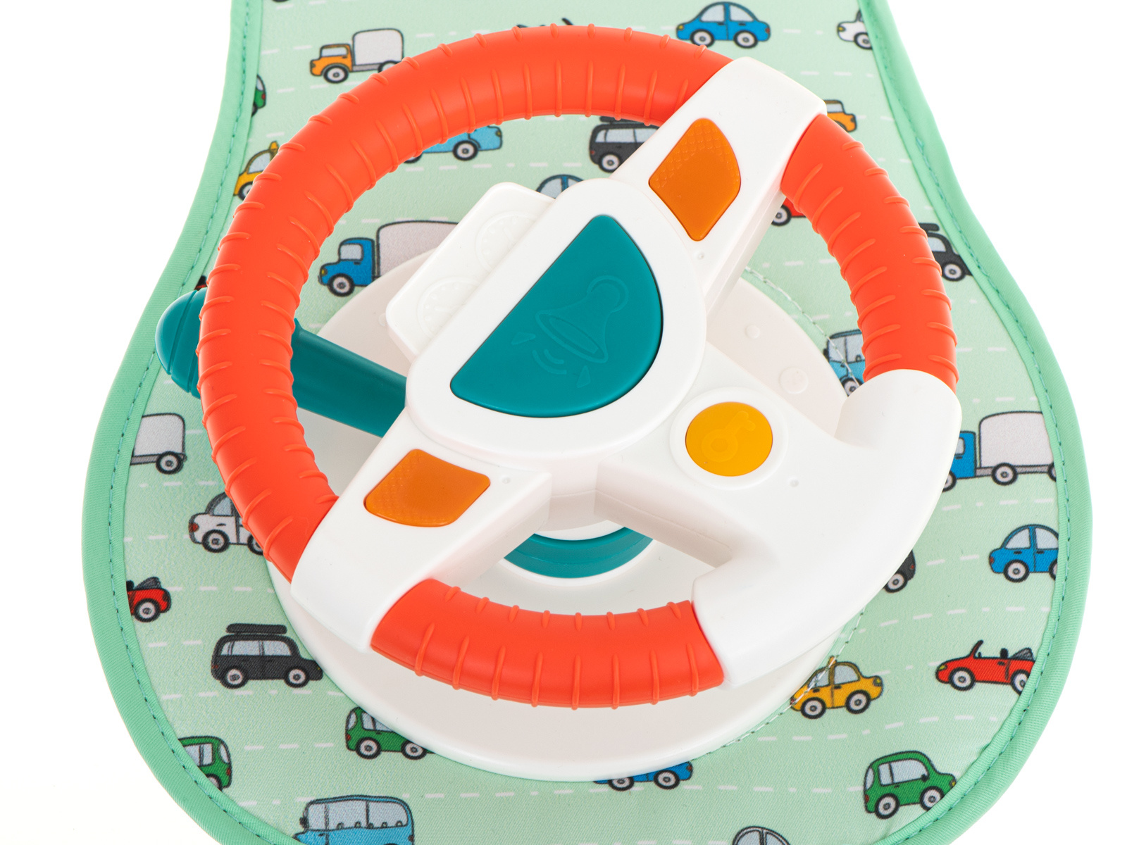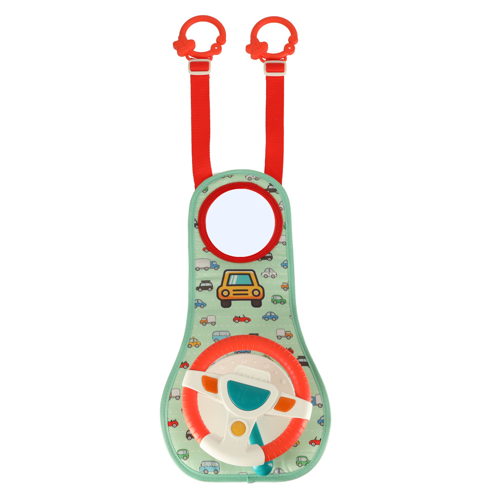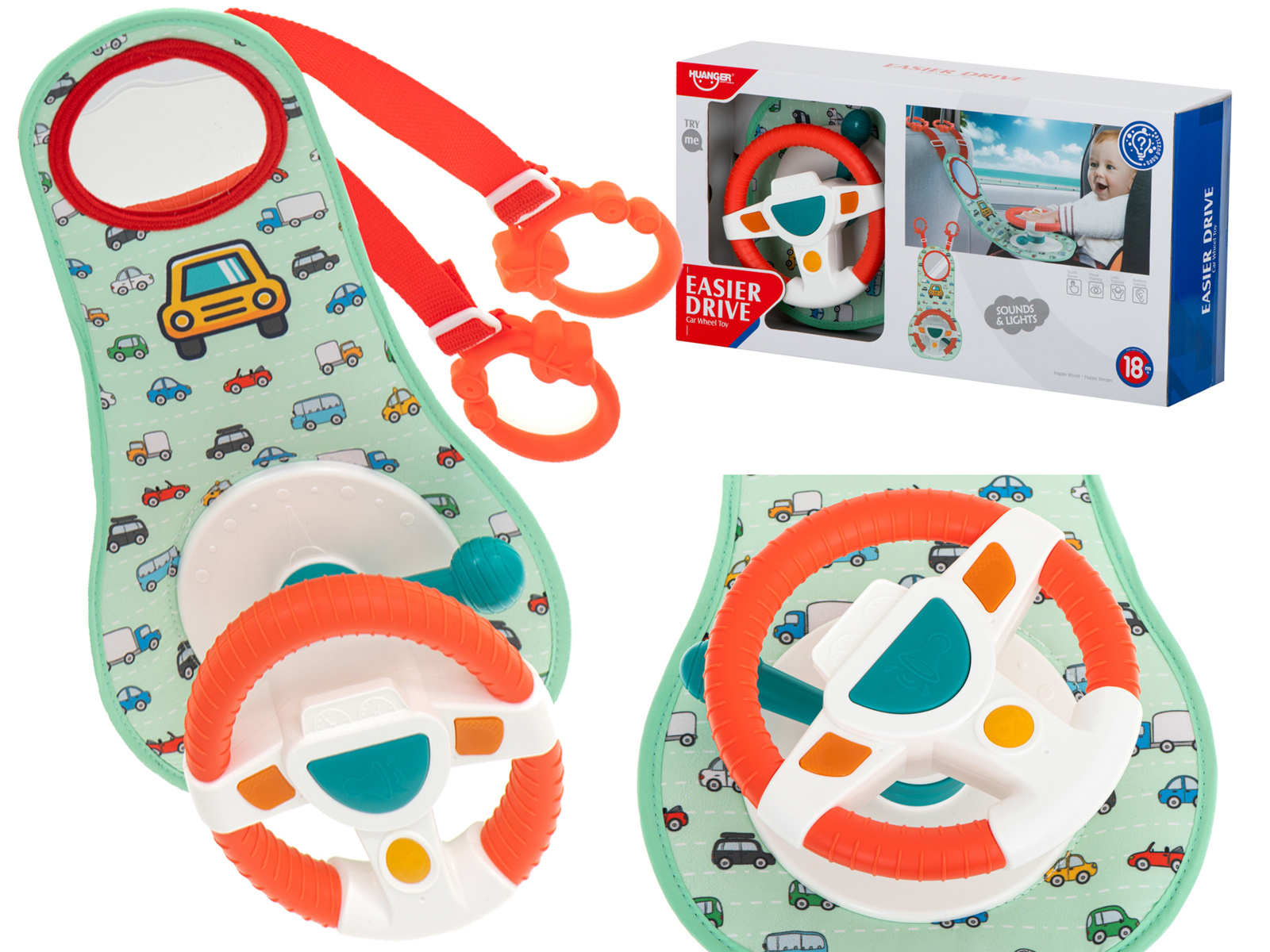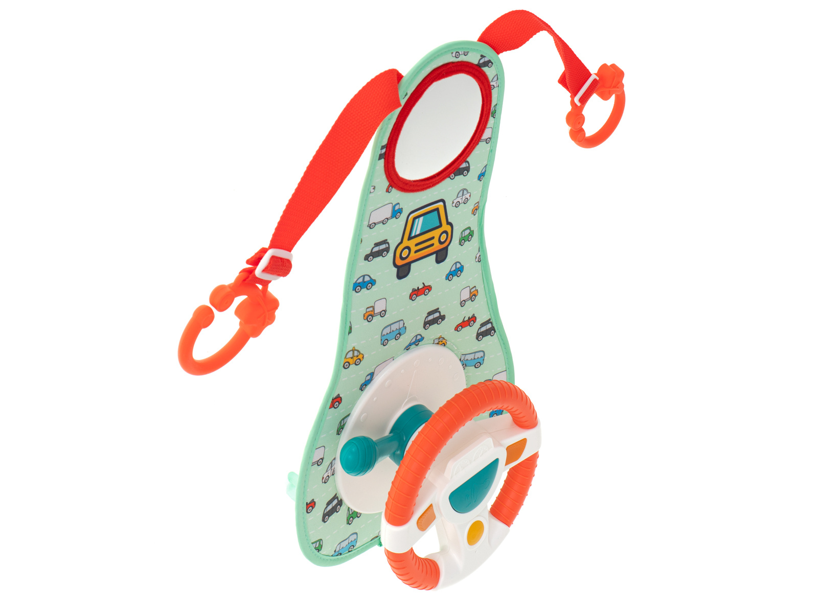 Ein aufgeregtes oder weinendes Kind auf dem Rücksitz ist für den Fahrer eine große Belastung. Wir haben eine Lösung, die die Reise Ihres Kleinkindes komfortabler macht und für eine reibungslose Fahrt sorgt.Das interaktive Lenkrad ist eine Art Manipulationsbrett, das die kleinen Hände während der gesamten Fahrzeit erfolgreich beschäftigt. Es besteht aus einem Lenkrad mit 4 Tasten, einem Sensorgriff und einemSicherheitsspiegel aus Kunststoff. die Stücke werden auf eine feste Matte gelegt, die mit einem angenehmen Stoff mit Automotiv überzogen ist.
