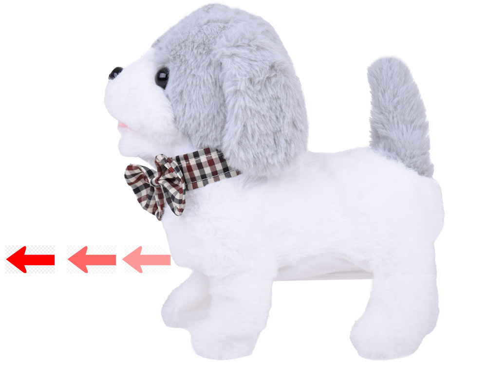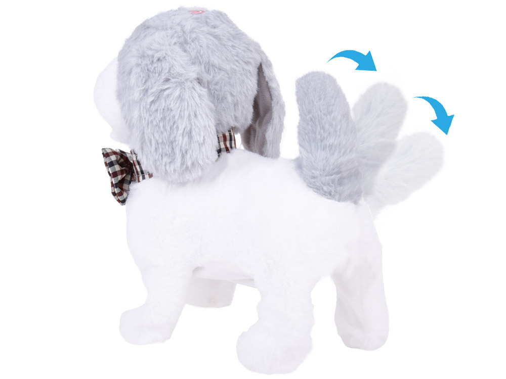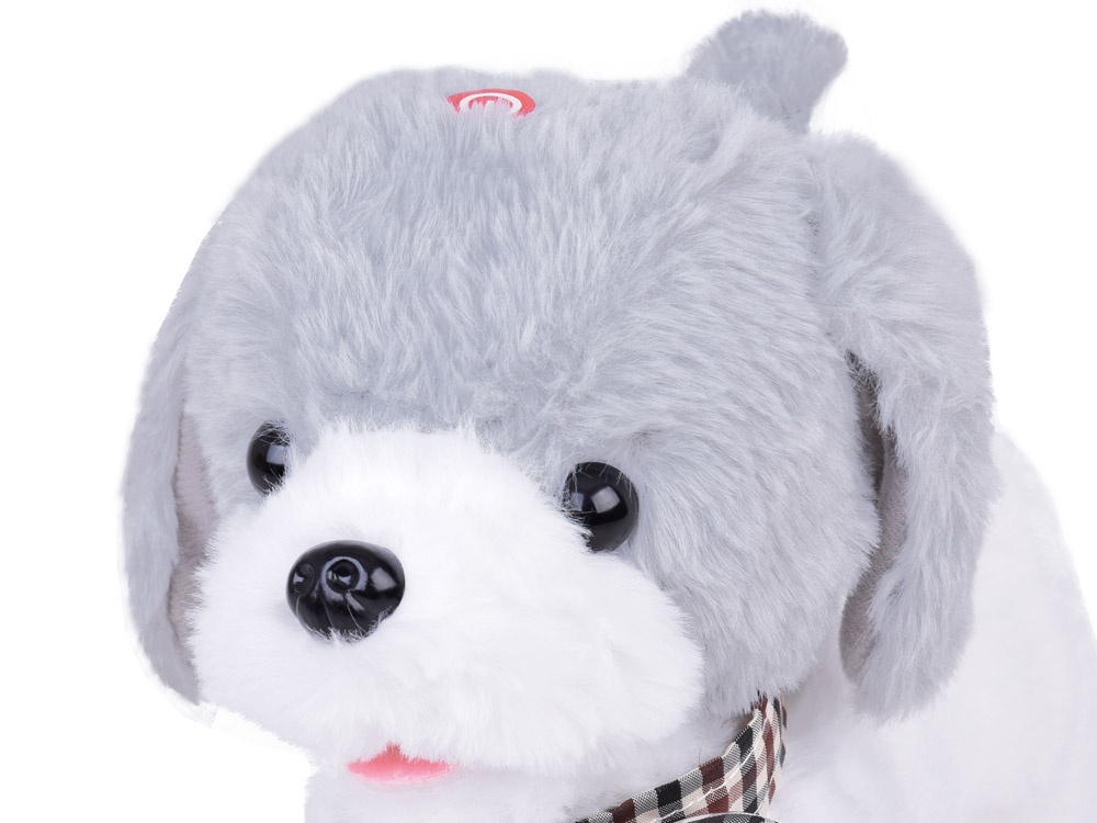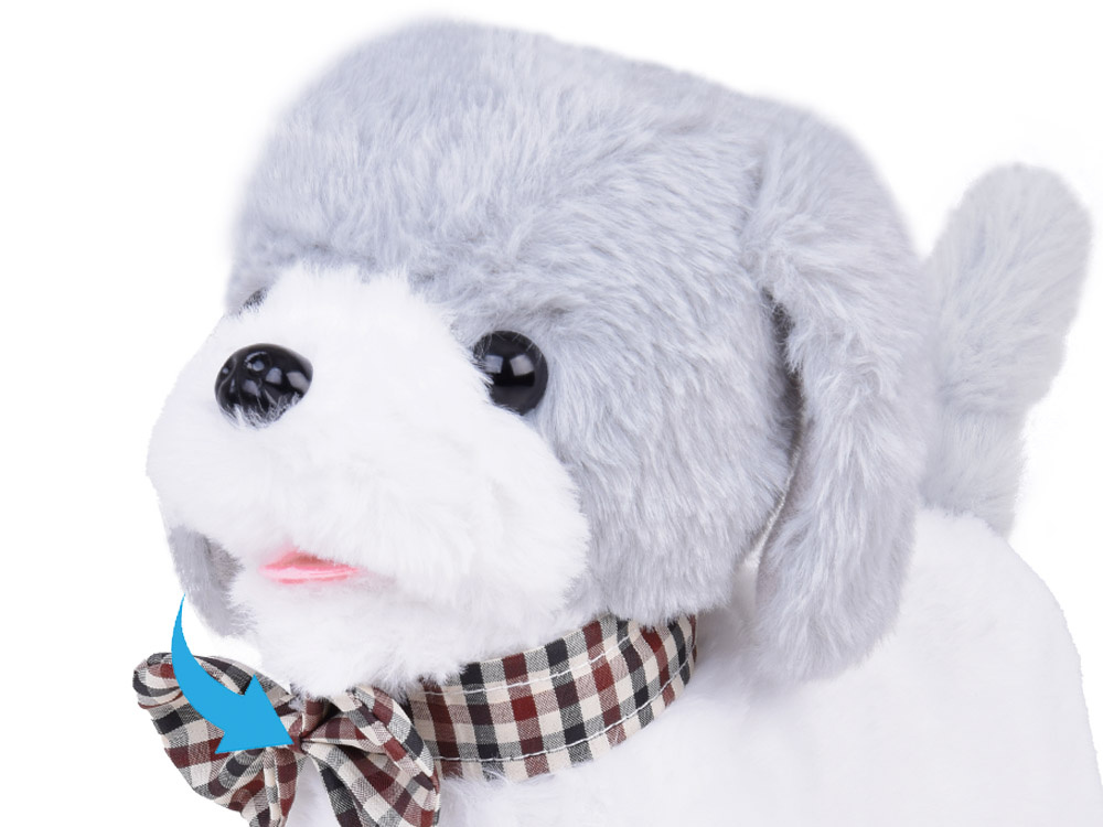 Poznaj eleganckiego pieska w biało szarym kolorze z elegancką muszka w kratę pod szyją. Piesek Charli – uroczy, interaktywny zapewni idealne towarzysze dla każdego dziecka marzącego o własnym zwierzaku. Piesek obszyty pluszowym materiałem jest idealny do głaskania.