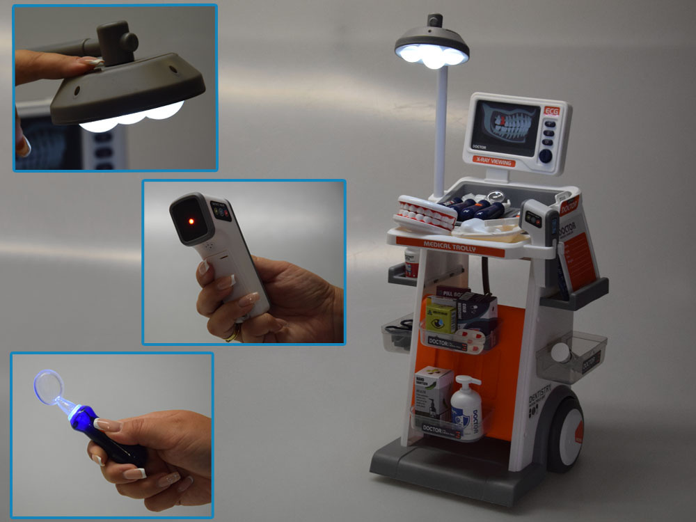 Każde dziecko uwielbia zabawę w różne zawody, odgrywając scenki i naśladując dorosłych! Najpopularniejszymi odgrywanymi zawodami są kucharze, kierowcy, zwłaszcza pojazdów budowlanych, policjanci oraz lekarze. Dlatego tym razem przychodzimy z propozycją specjalnego wózka lekarskiego, którym dziecko może bawić się w lekarza ogólnego, jak i przede wszystkim dentystę.