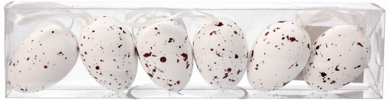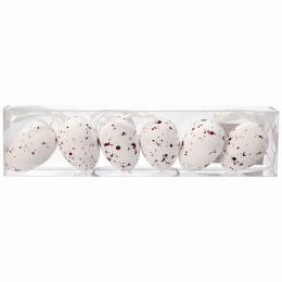 Jajka przepiórcze ze styropianu do powieszenia, komplet 6 szt., to dekoracyjne elementy, które doskonale pasują do świątecznej aranżacji wielkanocnej. Wykonane z lekkiego styropianu, jajka mają naturalny wygląd przepiórczych jajek, a dzięki otworowi w górnej części, można je łatwo zawiesić. Idealne do ozdobienia gałązek w wazonie, stroików czy jako wiszące dekoracje w domu. Są to doskonałe akcesoria do tworzenia wyjątkowej atmosfery podczas Świąt Wielkanocnych.