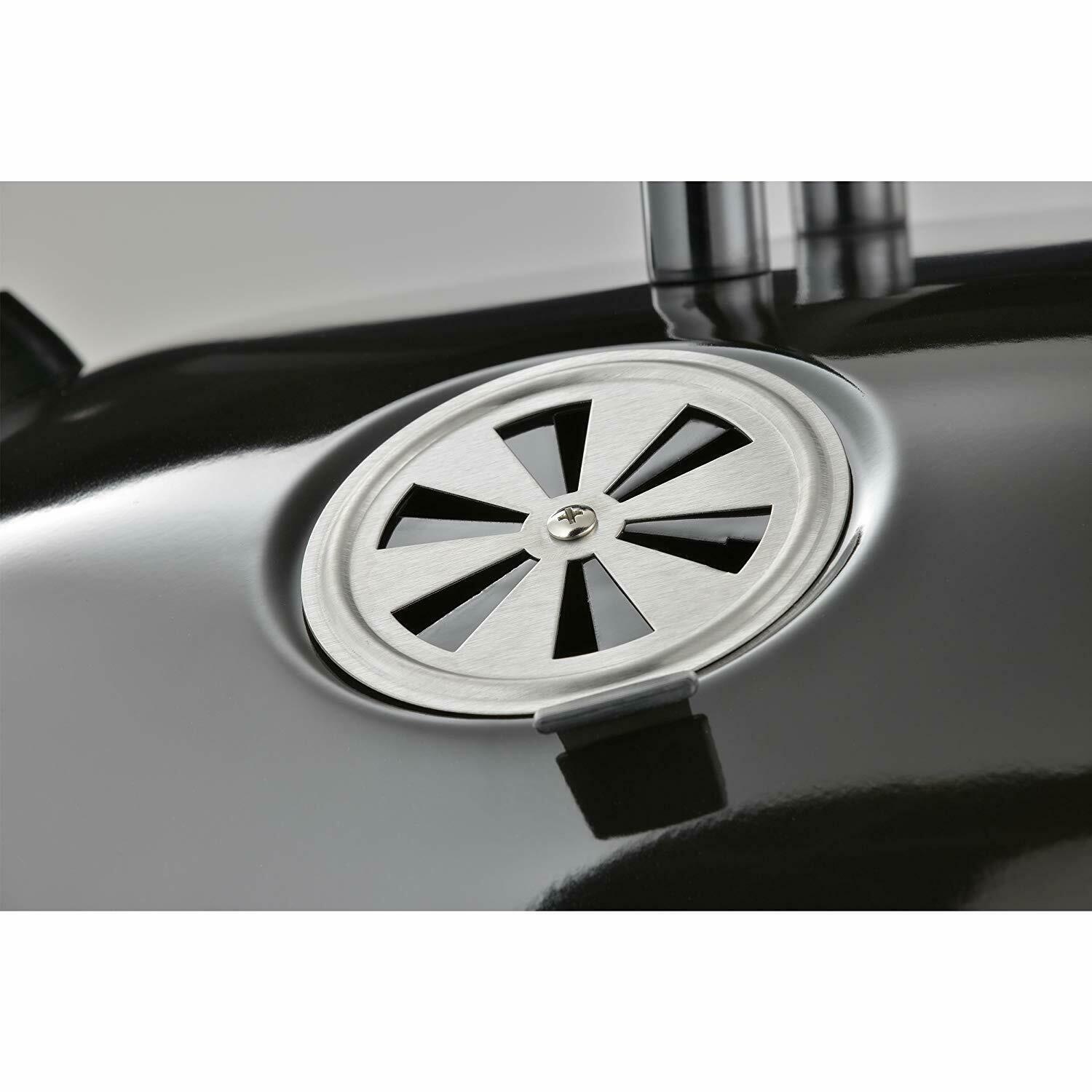 Herausnehmbarer Aschebehälter, der leicht gereinigt werden kann. Silikongriff des Deckels als Schutz vor Verbrennungen. Obere und untere Belüftungsöffnungen für maximale Kontrolle der Wärmeintensität.