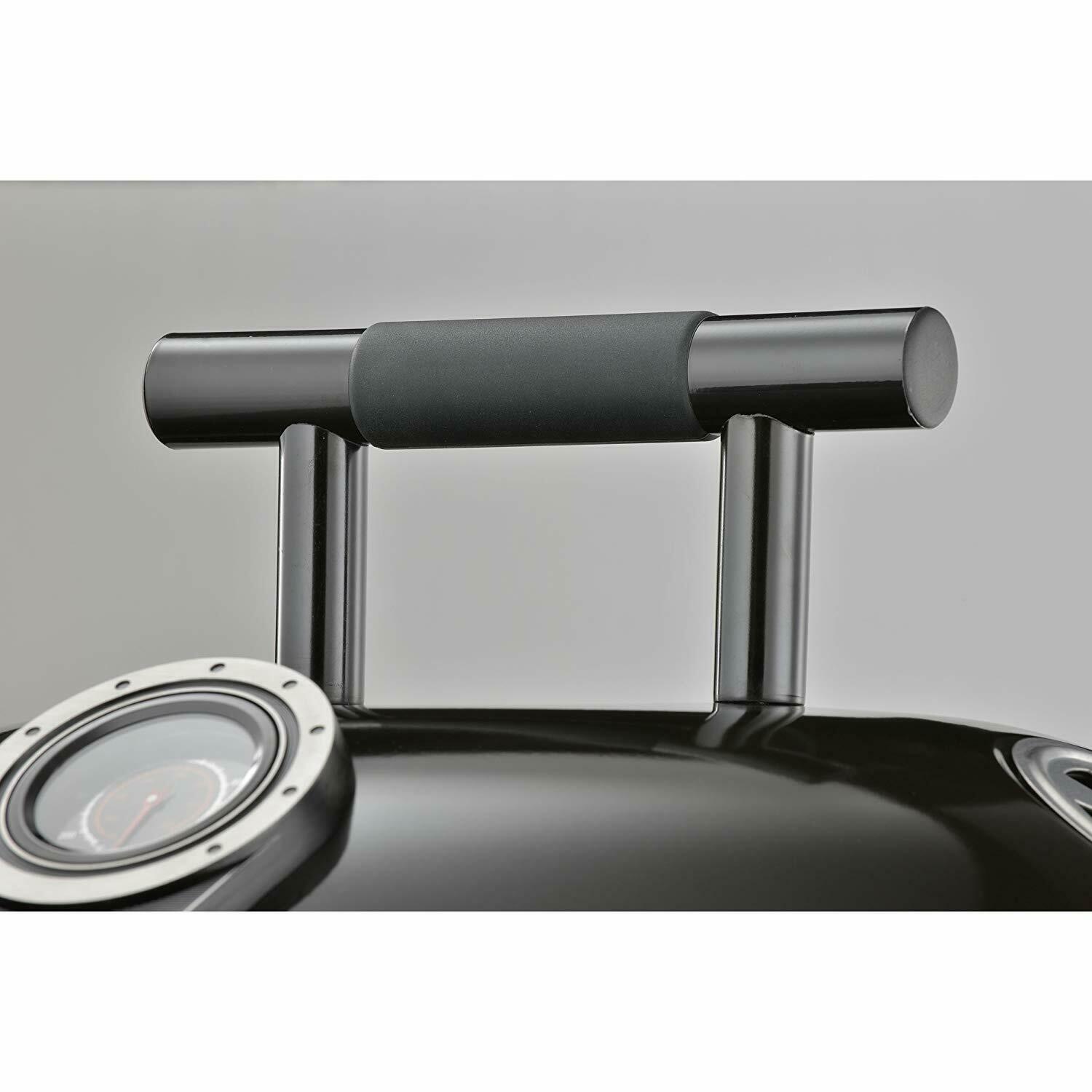 Deckel mit extra großem Thermometer, Fach zur Aufbewahrung von Grillwerkzeug. Abnehmbarer Mittelring, der zur Erhöhung der Grillfläche oder als Windschutz verwendet werden kann.