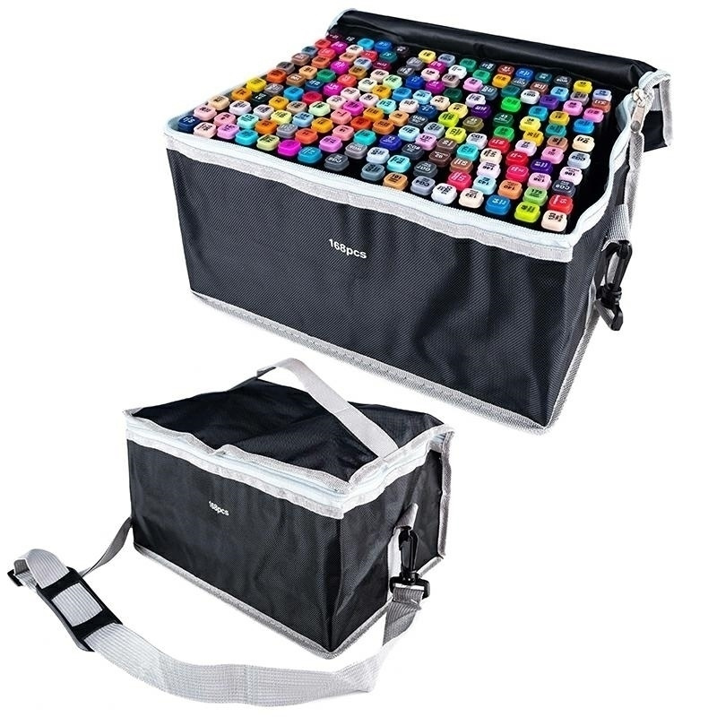 Zestaw dwustronnych mazaków / markerów w 168 transparentnych barwach. Każdy mazak posiada 2 końcówki (szeroką i precyzyjną). Markery wykonane z nietoksycznych materiałów zapakowane są w poręczne etui z rączką do przenoszenia. Dzięki dużej gamie kolorów możliwe jest wykonywanie ciekawych przejść kolorystycznych i cieniowania kolorem. Specyfikacja: 168 transparentnych barw każdy marker posiada 2 końcówki możliwość łączenia barw, wykonywania przejść i cieniowania nietoksyczne wypełnienie wygodne etui do przechowywania i przenoszenia wymiary etui: 30x20x17cm Ilość szt. na palecie: 120 Produkt zapakowany w dodatkowy karton - gotowy do wysyłki.