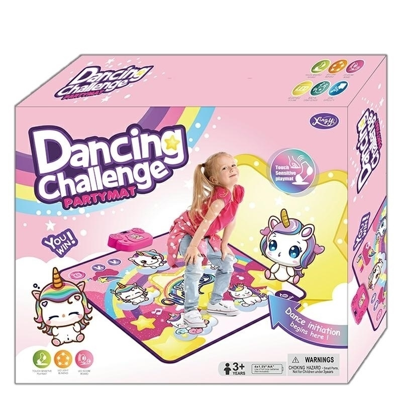 Muzyczna mata do tańca to znakomita zabawka, dzięki której dziecko może rozwinąć swoje talenty taneczne, koordynację ruchową oraz umiejętności motoryczne. Ponadto wzmaga kreatywność i potęguje zamiłowanie do muzyki. W sposób bezpieczny i pełen dobrej zabawy umożliwia wejście małej tancerki na nowy poziom i wspomaga prawidłowy rozwój mięśni i stawów, z którym we współczesnym świecie jest tak duży problem. Dyskotekowa kolorystyka i feeria barw charakterystyczna dla klubowych parkietów sprawią, że twoje dziecko niebędzie chciało schodzić z maty, a ty będziesz miał pewność, że w tym wypadku każda kolejna minuta zabawy korzystnie wpływa na zdrowie twojej pociechy. Cechy produkty: - zasilanie bateryjne 4x AA(brak w zestawie) - możliwość zasilania poprzez kabel USB-C(nie dołączo) - duża kolorowa mata - pięć przycisków tanecznych - możliwość regulacji głośności - 9 wgranych melodi tanecznych - 4 tryby zabawy Wymiary maty: 90x90 Zabawka dla dzieci powyżej 3 lat Wymiary opakowania:44x37x8cm