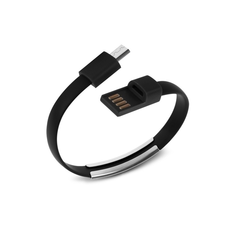 Kabel z wtyczką micro USB umożliwia szybkie przesyłanie danych zgodnie ze standardem USB 2.0 oraz ładowanie telefonu z gniazda USB komputera. Pasuje do wszystkich modeli telefonów, które posiadają gniazdo micro USB. Dzięki zapięciu mozna nosićgo jak bransoletkę. Dane techniczne: - długość - 22cm - średnica bransoletki - 7cm - materiał - silikon+metal