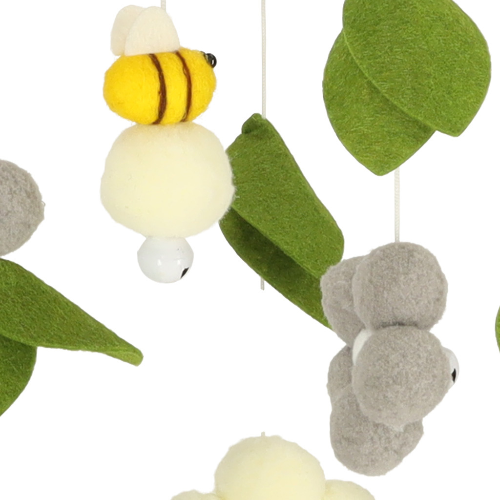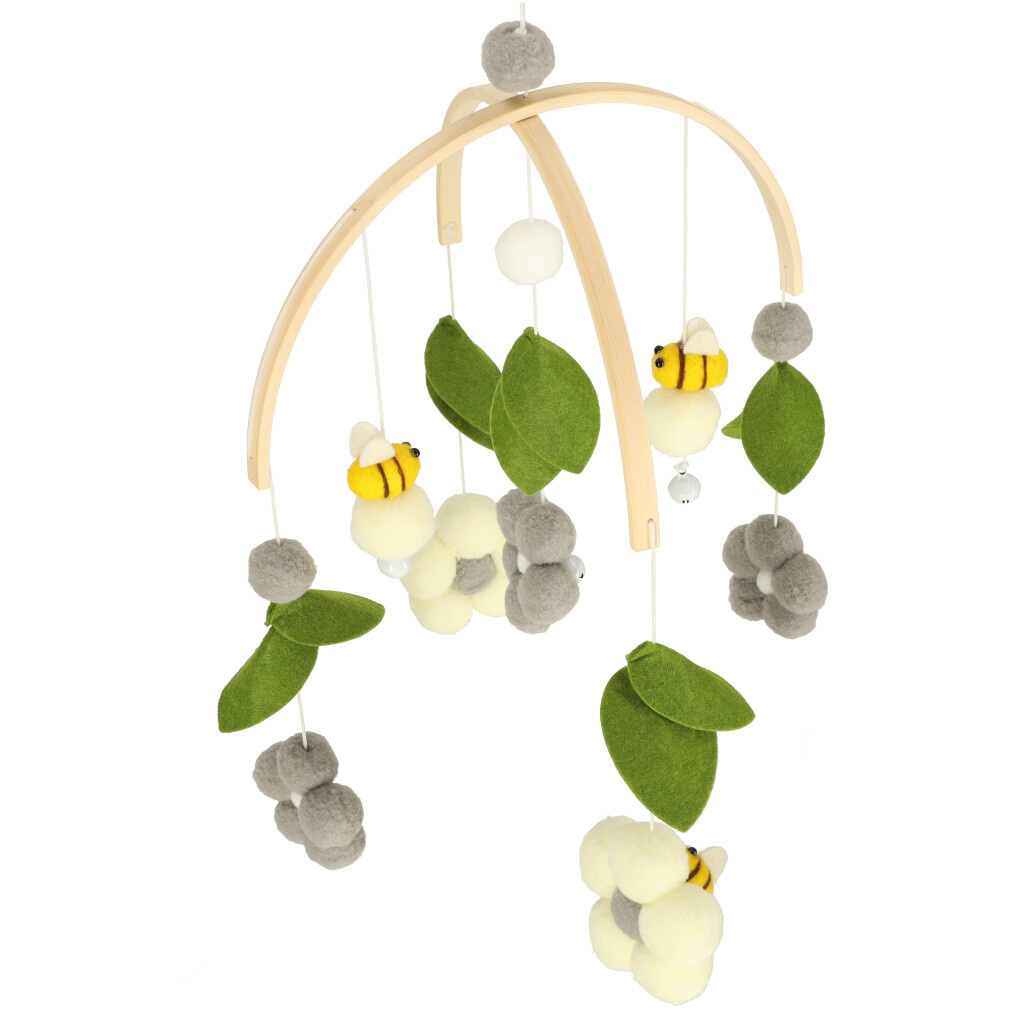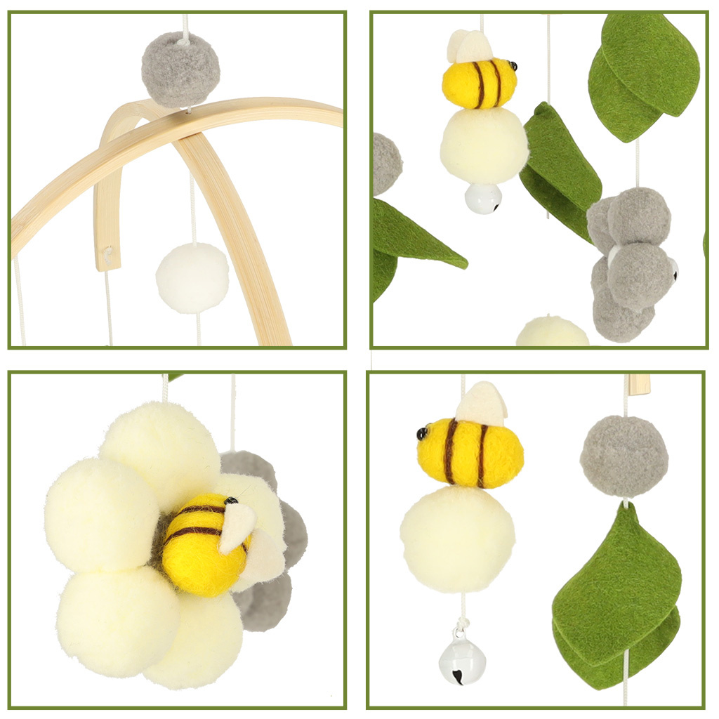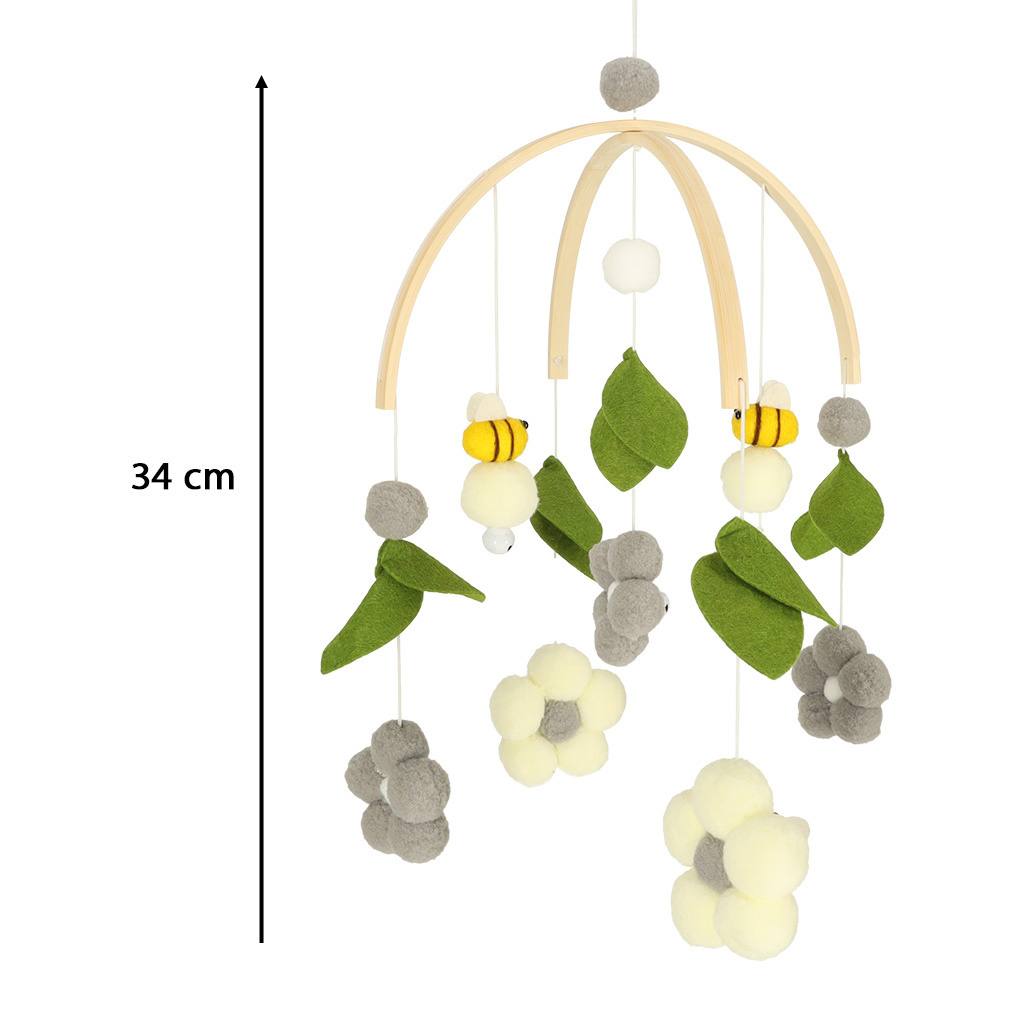 Wenn man das Karussell in Bewegung setzt, fangen die gelben Bienen und die flauschigen Blumen an, sich zu bewegen, was die Aufmerksamkeit des Kindes weckt und gleichzeitig seine Sehkraft fördert. Kleine Glöckchen klingeln sanft und stimulieren das Gehör.