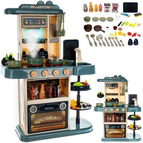 ?KALTER DAMPF UND GERÄUSCHE BEIM KOCHEN - die Küche gibt realistische Geräusche und Kochgeräusche wie Braten und Blubbern von sich. Der linke Brenner hat einen eingebauten Verdampfer, der den Effekt von "kaltem Dampf" ermöglicht. Um den Dampfeffekt zu erzielen, gießen Sie etwa 50 ml Wasser in die Öffnung des Brenners. Stellen Sie den Topf ab und nach einiger Zeit (wenn das "Wasser verdampft ist") beginnt kalter Dampf aus dem Topf zu kommen (das Kind verbrennt sich nicht).