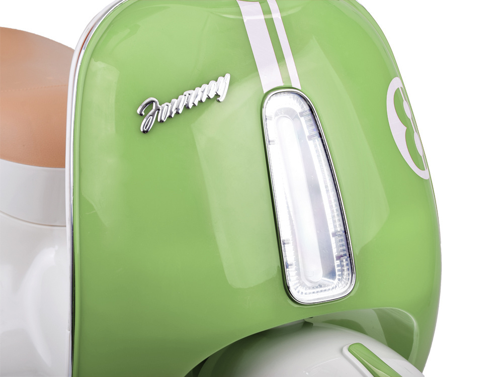 Przenieś swoje dziecko w świat klasycznego stylu i świetnej zabawy dzięki elektrycznemu skuterowi dziecięcemu w stylu vintage. Ten uroczy pojazd inspirowany kultowym włoskim designem Vespy łączy elegancję retro z nowoczesną technologią, zapewniając bezpieczną i ekscytującą jazdę dla najmłodszych.