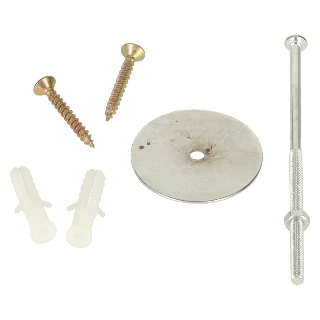 montážní sada: kruh o průměru 4 cm, 10 cm dlouhý šroub a matice a 2 šrouby s 3 cm dlouhými hmoždinkami.