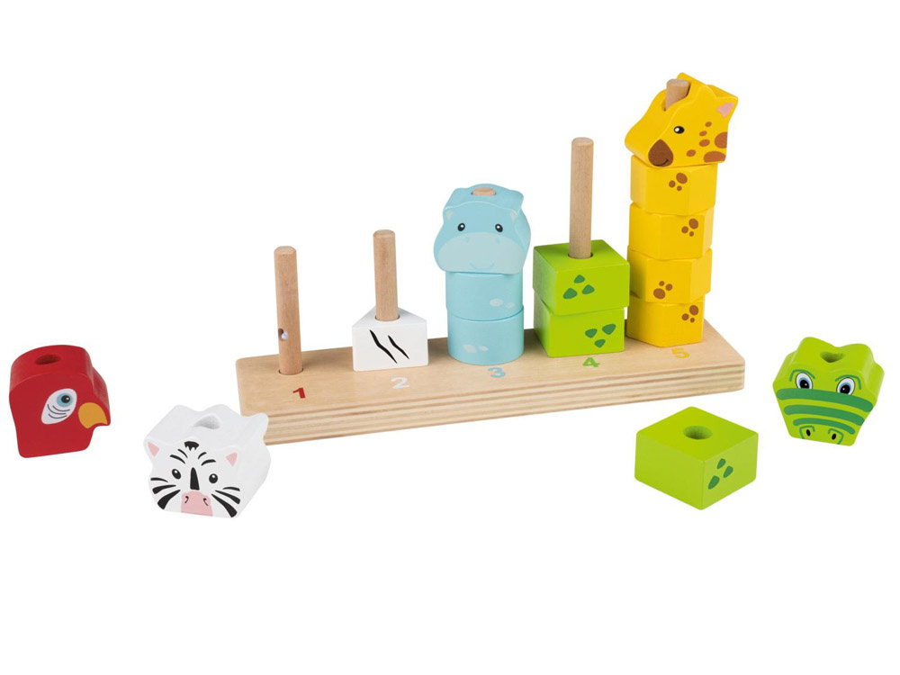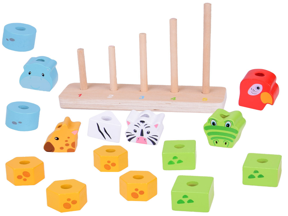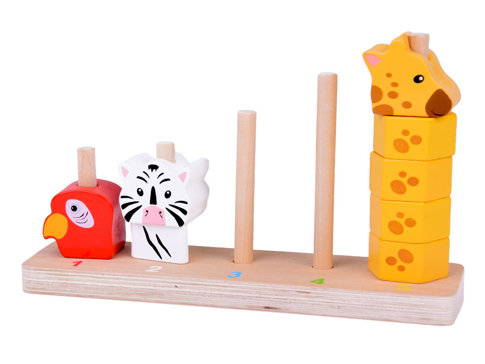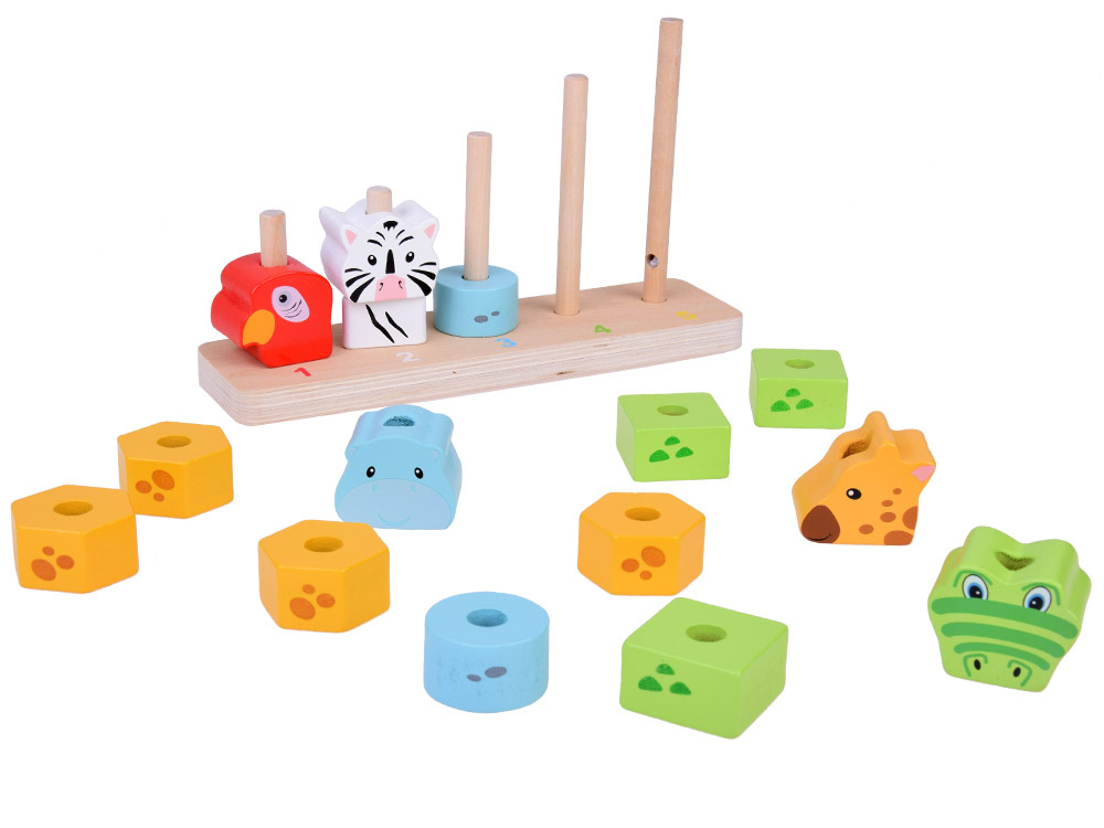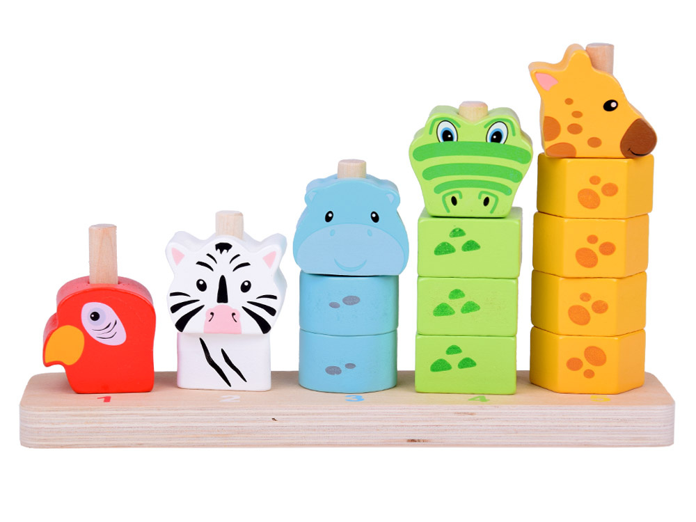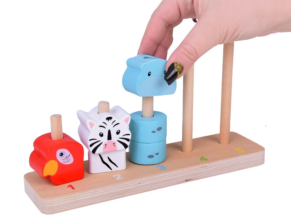 Piramidka Drewniane Klocki Zwierzątka – zabawa, która uczy kolorów, kształtów i liczenia!