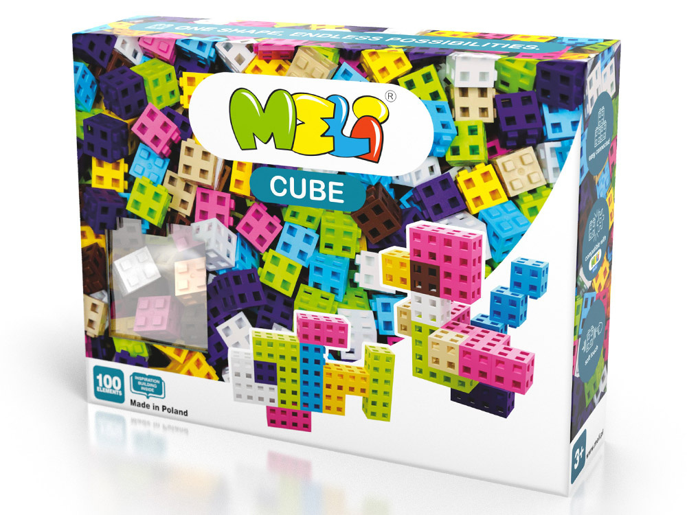 Kolorowe Klocki Cube Meli 100 elementów to propozycja dla każdego dziecka. Świetny zestaw pozwoli na zbudowanie dowolnej konstrukcji. Klocki bardzo łatwo łączą się ze sobą, są miłe w dotyku w ładnych kolorach. Są w kształcie niewielkich kostek, wykonanych z miękkiego i bezpiecznego materiału. Każdy element z jednego boku wyposażony jest w cztery piny, a z pozostałych – w cztery otwory. Dzięki temu sześciany można sprawnie łączyć i szybko demontować, aby tworzyć przeróżne trójwymiarowe konstrukcje. Zajmująca zabawa może trwać długie godziny? Tak - serię CUBE możesz łączyć, dokupując zestawy i poszerzając tym samym możliwości konstrukcyjne małych entuzjastów kreatywnej zabawy! Z ich pomocą dziecko stworzy pojazdy, zwierzęta lub budynki. Spora liczba elementów zachęci do kreatywnej zabawy i na pewno długo się nie znudzi.