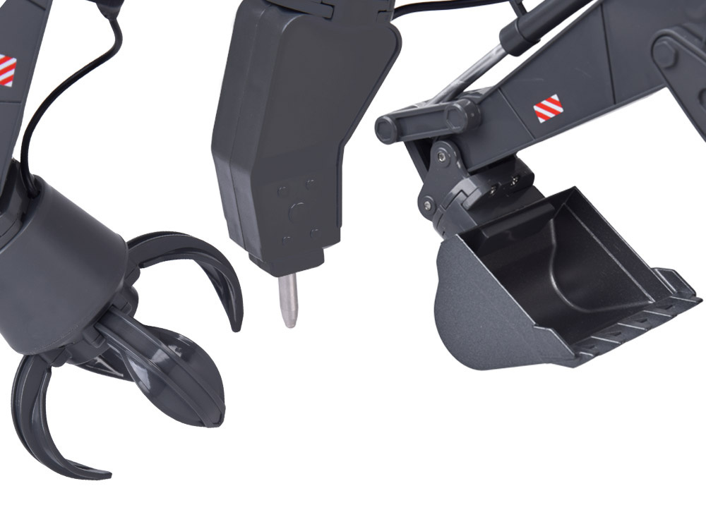 Ta realistyczna koparka zdalnie sterowana to doskonały wybór dla małych fanów maszyn budowlanych. Wykonana z ogromną dbałością o detale, wygląda jak prawdziwy sprzęt z placu budowy – z kabiną operatora, ruchomym ramieniem, oświetleniem LED, wymiennymi końcówkami (chwytak, młot pneumatyczny, łyżka) .