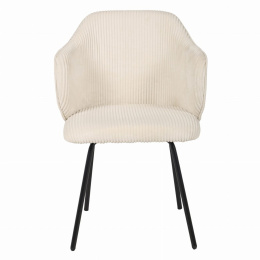 To nie jest zwykły mebel, to prawdziwa ozdoba wnętrza, która przyciąga wzrok i nadaje przestrzeni charakteru. Miękka, welurowa tapicerka o przypominająca sztruks w modnym kremowym kolorze sprawia, że każdy kontakt z tym krzesłem to czysta przyjemność. Zintegrowane podłokietniki i perfekcyjnie wyprofilowane oparcie gwarantują wygodę na najwyższym poziomie, a solidne metalowe nogi dodają mu lekkości i stabilności jednocześnie. Cechy produktu: Ergonomiczna konstrukcja - wyprofilowane oparcie i zintegrowane podłokietniki zapewniają wygodę nawet przy dłuższym siedzeniu. Tapicerka z miękkiego weluru przypominającego sztruks- przyjemna w dotyku, trwała i łatwa w pielęgnacji. Stabilna podstawa - cztery metalowe nogi malowane proszkowo na czarno, lekko rozchylone dla lepszej stabilności. Uniwersalny styl - pasuje do wnętrz skandynawskich, loftowych, nowoczesnych. Kompaktowe wymiary - idealne do mniejszych przestrzeni bez kompromisu w kwestii komfortu.