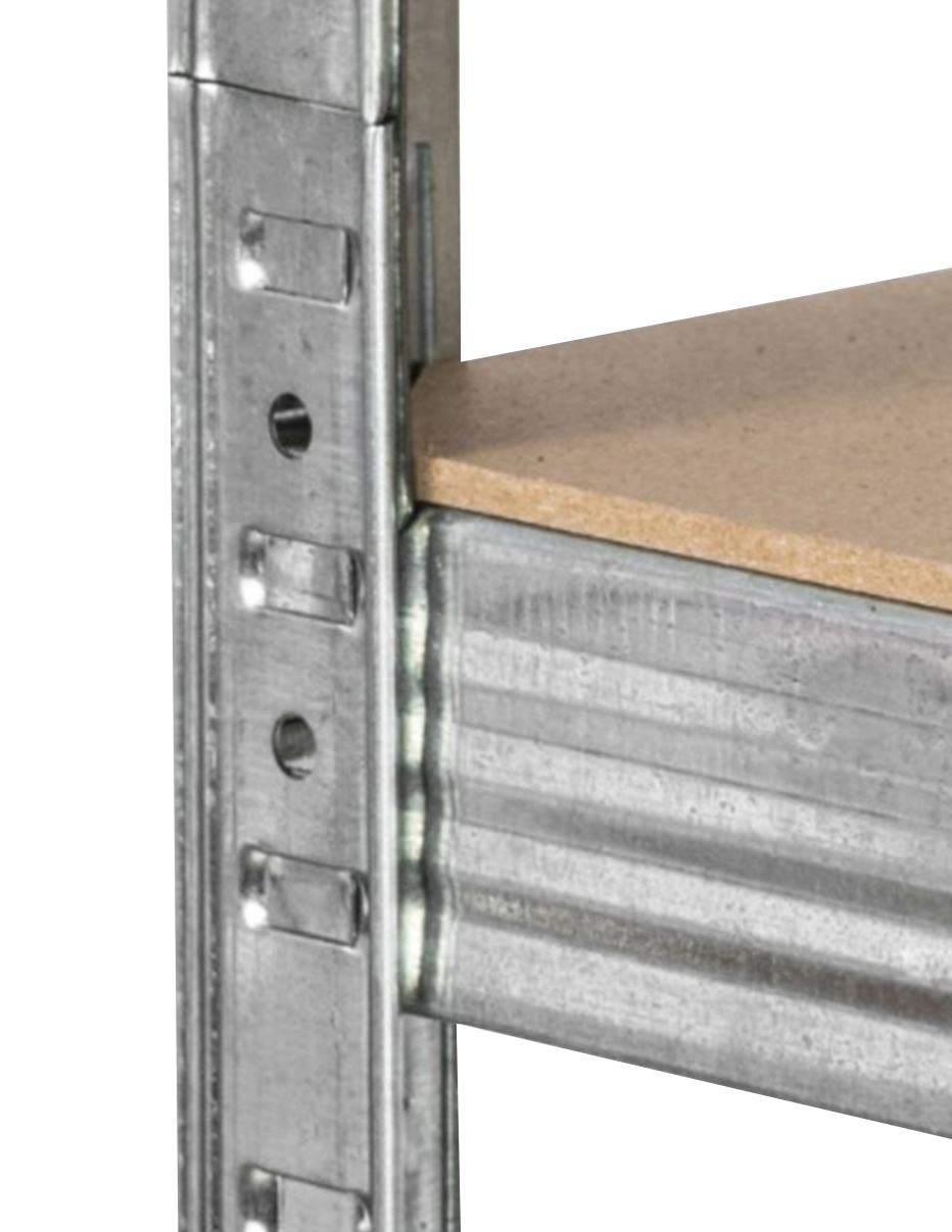 In einer Höhe von ca. 180 cm haben Sie 5 MDF-Fachböden, die Sie nach Bedarf einschieben können. Der verzinkte Stahlrahmen in silberner Farbe garantiert Stabilität und eine hohe Belastbarkeit von ca. 875 kg (ca. 175 kg pro Boden).