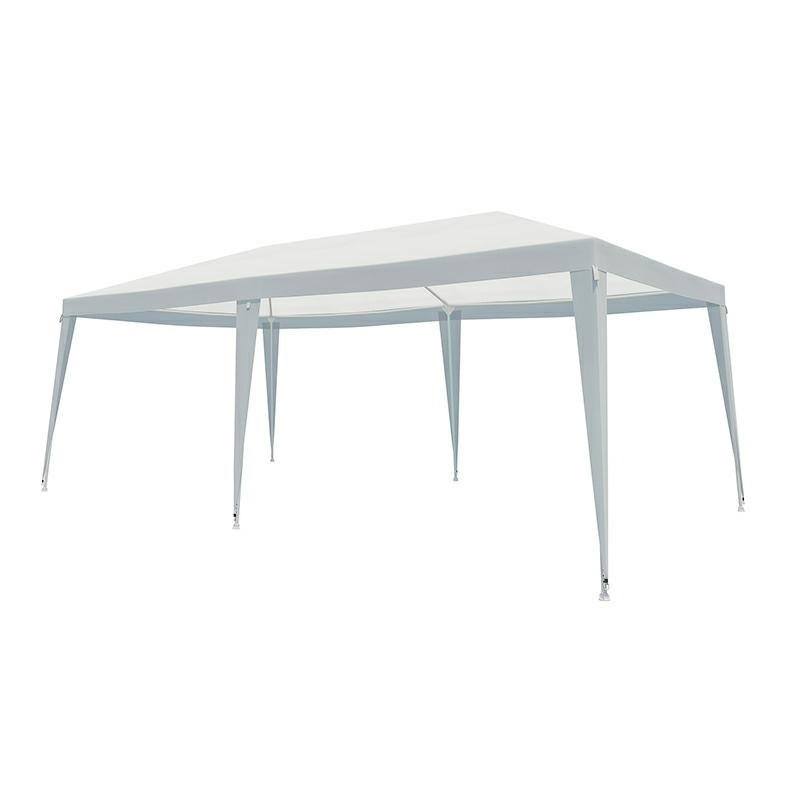Pawilon ogrodowy z wodoodpornego polietylenu ok. 3x6m wysokość 2,5m. Prosty w montażu. Odpowiedniej wytrzymałości elementy konstrukcyjne (średnica rurek 32/25/19mm) warunkują o stabilności pawilonu. Konstrukcja wykonana ze stali lakierowanej na kolor biały metodą proszkową. Odpowiedni podczas imprez plenerowych. Cechy produktu: - trwały i stabilny pawilon ogrodowy - przeznaczony do ogrodu lub na działkę - do wykorzystania także jako namiot handlowy - ochrona przed słońcem i deszczem - stabilna konstrukcja - solidny stelaż - wytrzymały, odporny na warunki atmosferyczne materiał - kolor biały W zestawie: - pawilon ok. 3x6m (dach, stelaż, zestaw mocujący = linki + śledzie) - instrukcja montażu PL Wymiary kartonu: 112x20x23cm Ilość szt. na palecie: 24