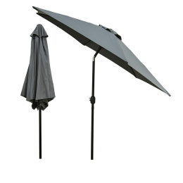 Parasol ogrodowy wykonany z odpornego na warunki atmosferyczne poliestru. Materiał jakości premium doskonale chroni przed działaniem promieni słonecznych. Wyposażony w mechanizm korbowy. Szybkie składanie/rozkładanie parasola. Parasol należy obciążyć, w przeciwnym razie istnieje ryzyko uszkodzenia parasola przez działanie wiatru. Gwarancja nie obejmuje uszkodzeń powstałych na skutek działania porywistego wiatru. Marka: Carruzzo Specyfikacja techniczna: - materiał poszycia: 100% poliester 180g/m2 - wymiary: wysokość 2,4m, średnica ok. 2,7m - stelaż ze stali - łatwy w przechowywaniu - możliwość pochylenia czaszy pod kątem ok. 45 st. - brak podstawy w zestawie - średnica masztu: 38mm Wodoodporność średnia: 10-30min w zależności od natężenia deszczu. wymiary opakowania: 13,5x13,5x139cm