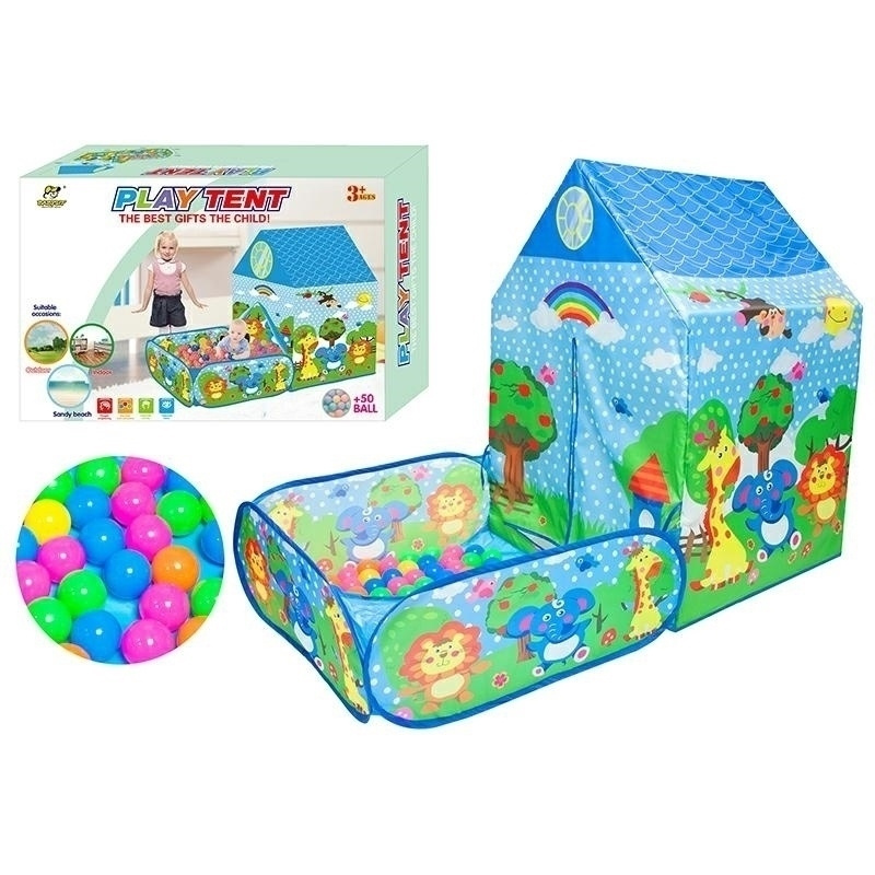 Namiot dziecięcy w kształcie domku z ogrodem wypełniony kolorowymi pileczkami. Kolorowe poszycie z pewnością przykuje uwagę każdego malucha. Namiot świetnie nadaje się do rozłożenia zarówno w domu jak i na zęwnątrz. Specyfikacja: lekki stelaż 50 kolorowych miękkich piłeczek z tworzywa sztucznego łatwe i szybkie rozkładanie basen na piłeczki w kształcie ogrodu wys. wejścia: 63cm poszycie wykonane z wytrzymałego poliestru wymiary: 140x70x103cm wymiary opakowania: 48x32x12cm Ilość szt. w kartonie: 12 Ilość szt. w kartonie: 84 Zabawka przeznaczona dla dzieci powyżej 3 roku życia.