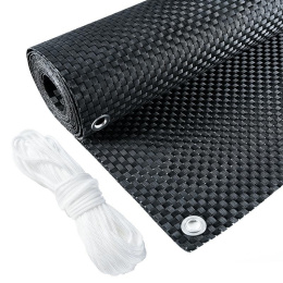 Osłona balkonowa wykonana z wytrzymałego polirattanu o wymiarach 3x0,9m. Osłona posiada wbudowane oczka do montażu. Do zestawu dołączona jest wytrzymała linka ułatwiająca mocowanie. Specyfikacja: wymiary: 3x0,9m odstępy między oczkami w poziomie: ok.50cm odstępy między oczkami w pionie: ok. 40cm materiał wykonania: polirattan 830g/m2 osłona odporna na warunki atmosferyczne długość linki: 12m Ilość szt. w kartonie: 1 Ilość szt. na palecie: 130