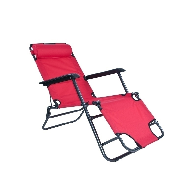 Turystyczny leżak wypoczynkowy, składany. Odpowiedni na plażę, do ogrodu, na taras, balkon. Stelaż wykonany z lekkiego, wytrzymałego metalu, siedzisko - trwałego tworzywa sztucznego. Konstrukcja metalowa malowana metodą proszkową.Możliwość ustawienia w trzech pozycjach: - leżąca - półleżąca - półsiedząca Posiada regulację oparcia i podnóżka. Zdejmowany podgłówek. Po złożeniu zajmuje mało miejsca, łatwy w przechowywaniu. Wymiary: - szerokość siedziska - 47 cm - długość siedziska - 45 cm - wysokość oparcia - 65 cm - długość całkowita - 153 cm - długość podłokietnika - 48 cm Wymiary po złożeniu: - wysokość - 88 cm - szerokość - 60 cm