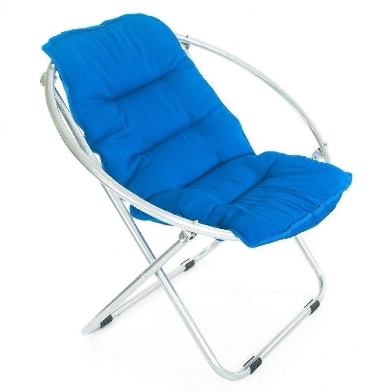 Wysokiej jakości krzesło-fotel turystyczny składany z oparciem model Moon okrągły. Został wykonany z materiału o wzmocnionym splocie stelaż ocynkowany odporny na warunki atmosferyczne. Fotel można złożyć i odstawić aby nie zajmował dużo miejsca. Kolory: czarny i niebieski Wymiary: po złożeniu: 76cm x 5cm po rozłożeniu: 76 x 80 cm wysokość siedziska: 36cm