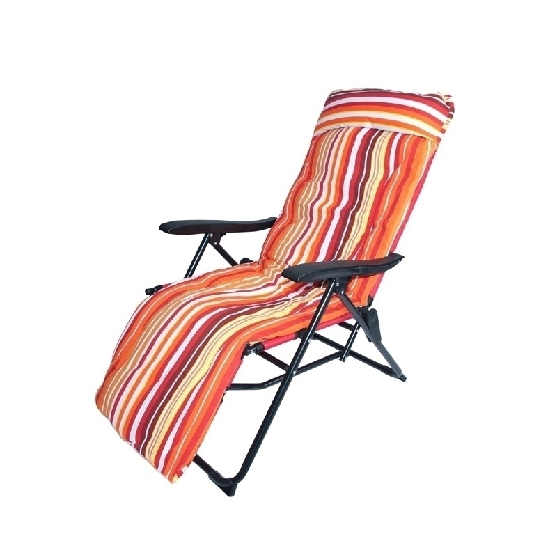 Fotel ogrodowy 2 poziomowy. Stelaż wykonany został ze stali malowanej proszkowo , poduszka i z polipropylenu i bawełny. Podgłówek ma 5 cm a grubości a siedzisko 4cm. Zastosowano w nim bezawaryjny 2 poziomowy mechanizm rozkładania. Poduszkę wystarczy tylko przetrzeć wilgotną ściereczką, aby usunąć wszelkie, naturalne zabrudzenia. Wygodne grube oparcie można łatwo zdjąć dzięki rzepom i wyprać. A dzięki spodniej warstwie wykonanej z wytrzymałego materiału nadal używać leżaka. Specyfikacja: -Max. obciążenie: do 100 kg -. 2 stopniowa regulacja oparcia. Wymiary całkowite: - po rozłożeniu: 155 x 63 x ok 80 cm - po złożeniu: 95 x 63 x ok 14 cm Wymiary siedziska: - 155cm x 52cm