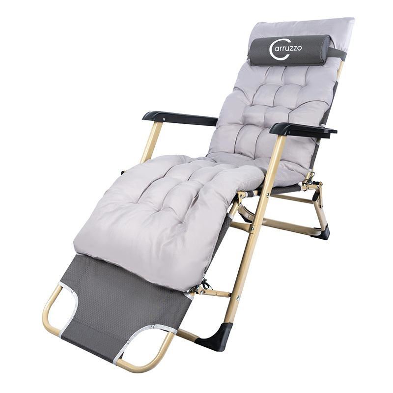 Składany, wielofunkcyjny, odpowiedni do ogrodu, na taras, balkon. W dużym stopniu redukuje nacisk na kręgosłup, łagodzi i rozluźnia napięte mięśnie. Leżak został zaprojektowany tak, by ugięte nogi znajdowały się na wysokości serca. W tej pozycji ciało odpoczywa i nabiera sił. Leżak cechuje bezpieczeństwo, komfort i wygoda. Nowoczesne wzornictwo, materiał Textoline (elastyczny i wygodny), elementy metalowe malowane proszkowo (antykorozyjnie). Wysoka jakość wykonania. Materiały odporne na warunki atmosferyczne (deszcz, słońce). Konstrukcja pozwala na przejście z pozycji siedzącej do leżącej bez użycia rąk. Marka: Carruzzo Wymiary: - szerokość siedziska - 46 cm - długość siedziska - 48 cm - wysokość oparcia - 76 cm - długość podłokietnika - 48 cm - długość całkowita - 178 cm - wysokość całkowita: 93,5 cm - szerokość całkowita: 60 cm Wymiar dużej poduszki: 160 x 48 cm Wymair małej poduskzi (podgłówka): 34 x 14,5 x 6 cm Materiał: poliester, PCV Ilość szt. na palecie: 20
