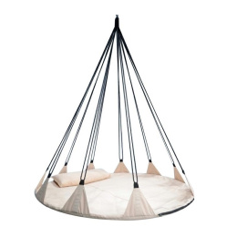 Wysokiej jakości huśtawka / hamak ogrodowy. Łatwa w montażu konstrukcja. Huśtawka może być zamocowana pod sufitem lub na belce w ogrodzie. Poszycie wykonane z materiałów odpornych na warunki pogodowe, solidne mocowania zapewniają bezpieczeństwo. Konstrukcja siedziska składa się z metalowej ramy. Maksymalne obciążenie do 150 kg. Marka: Carruzzo Specyfikacja: materiał wykonania: Oxford 600D hamak zawieszony na 10 nylonowych linach w zestawie poduszka 75x25x13cm średnica: 150cm wysokość 150cm, przy maksymalnym obciążeniu 170 cm wymiary kartonu:80x24x16.5cm Ilość szt. na palecie: 50