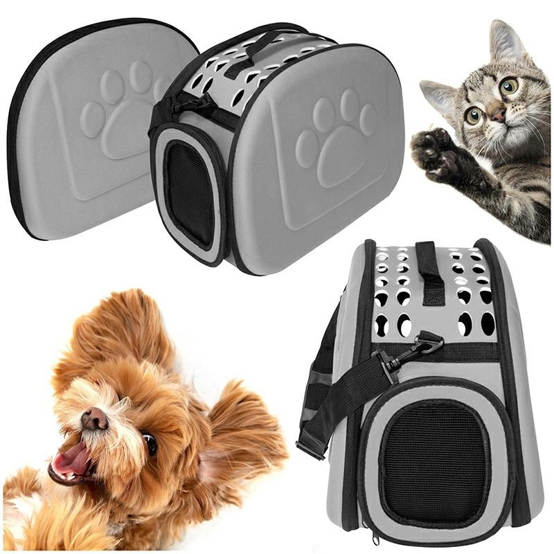 Składana torba transportowa, zakładana na ramię, służąca do przewożenia zwierząt ważących do 6 kg. Elegancki transporter, z odpinanym paskiem do noszenia na ramieniu lub w ręku - trzymany za wygodny uchwyt. Specyfikacja torby transportowej: - kolor: szary - wyjmowany wkład 30x 21cm - długość x szerokość x wysokość 43cm x 28cm x 32cm - torba po złożeniu 43x32x6,5cm - waga produktu: 0,7 kg - akcesoria: wyjmowana wkładka, odpinany pasek na ramię Ilość szt. na palecie: 160 Produkt zapakowany w folipak - gotowy do wysyłki.