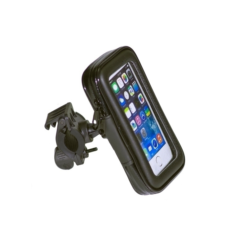 Wodoodporny uchwyt rowerowy. Umożliwia korzystanie z telefonu podczas jazdy. Przezroczysta część etui (4.5"), pozwala na swobodne obsługiwanie ekranu dotykowego, bez konieczności wyjmowania urządzenia z etui. Maksymalne wymiary przechowywanego urządzenia - 60 x 125 mm. Odpowiedni także do skuterów, czy kładów. Pokrowiec umożliwia pewne i stabilne zamocowanie wybranego urządzenia na kierownicy roweru. Pokrowiec chroni przed wilgocią i uszkodzeniami mechanicznymi przy jednoczesnym optymalnym dostępie do ekranu. waga: 60g