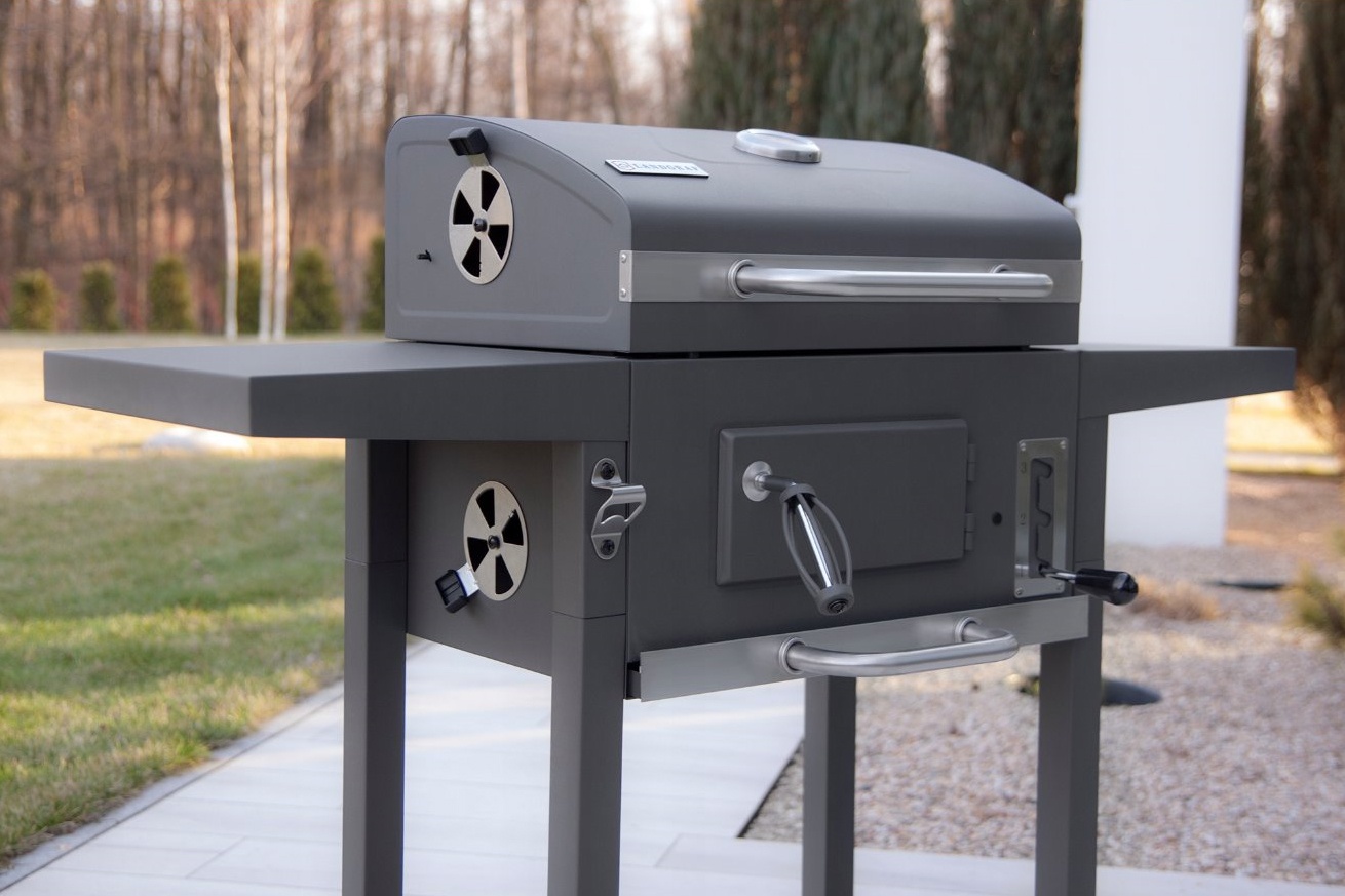 Die Grillsaison rückt langsam aber sicher näher.Professioneller Gartengrill für Holzkohle oder Briketts, hergestellt aus Blech, beschichtet mit einer feuerfesten Beschichtung.