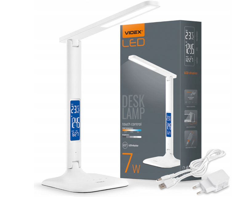 Die LED-Tischleuchte VIDEX ist ein energiesparendes Beleuchtungsgerät mit der Möglichkeit, die Farbtemperatur (3000K, 4000K, 5500K) und die Helligkeit (3 Stufen) zu verändern.