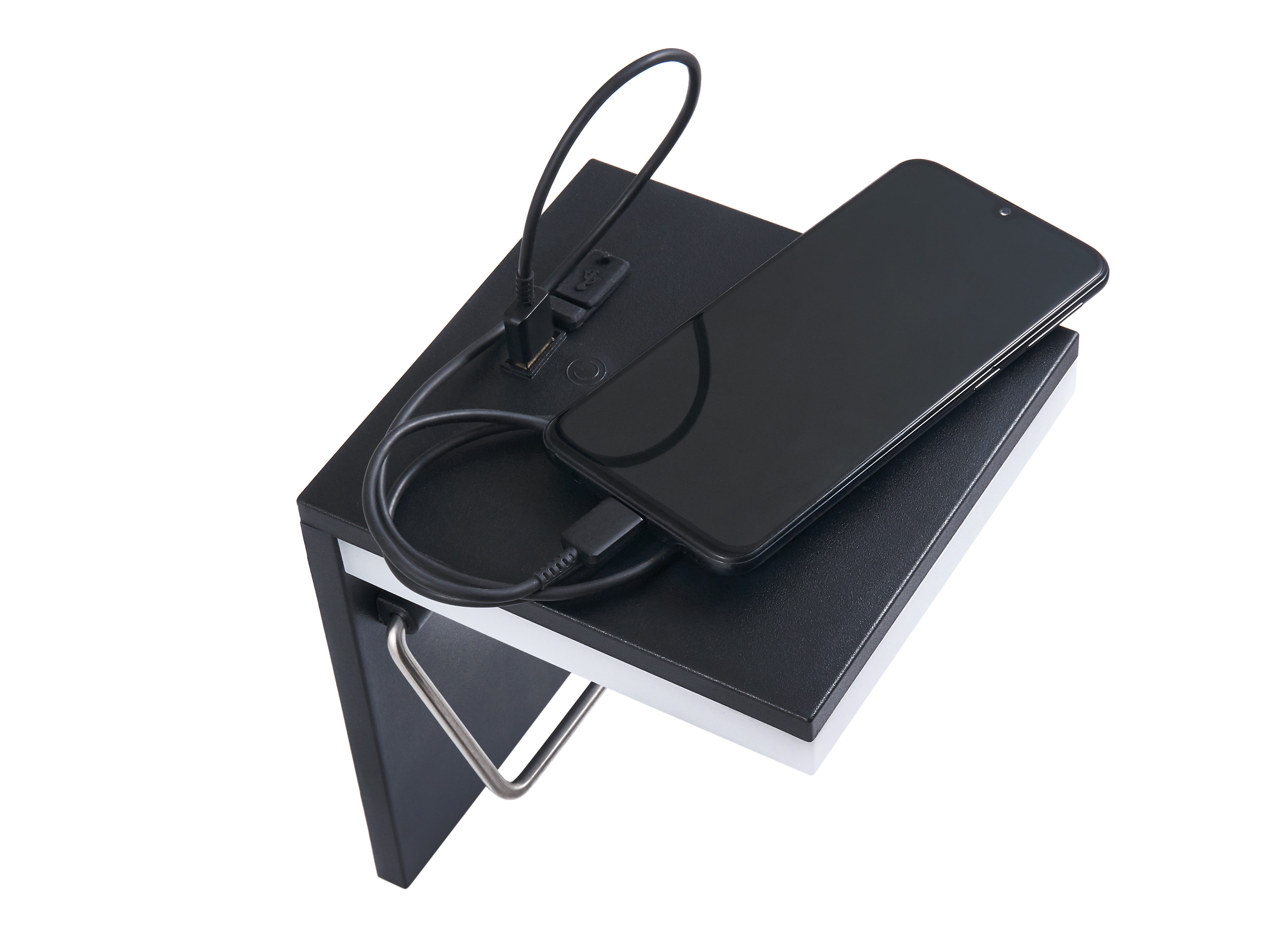 - der Griff hat eine eingebaute USB-Buchse, an die Sie andere Geräte (Telefon) anschließen können