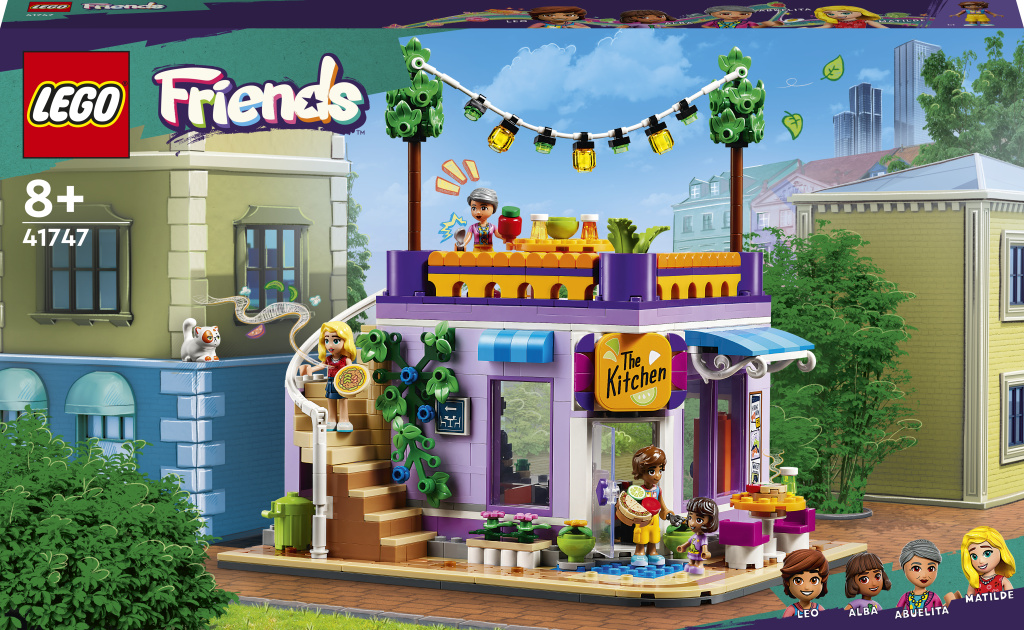 • Hraní na vaření pro děti od 8 let – Děti s láskou k vaření si užijí spoustu zábavy se stavebnicí LEGO® Friends Komunitní kuchyně v městečku Heartlake (41747) • 5 minipanenek a doplňky – Stavebnice obsahuje postavy LEGO® Friends Lea, Albu, Abuelitu, kocoura Churra, zákaznici Matilde a spoustu doplňků pro hraní • Doplňky z kuchyně – Spousta detailů, jako je řada ingrediencí, spižírna, lednice a dřez, inspiruje ke kreativnímu hraní. Nechybí sporák, kuchyňské náčiní a venkovní posezení • Zábava při stavění – Komunitní kuchyni můžete spojit se stavebnicí LEGO® Friends Komunitní centrum v městečku Heartlake 41748 (prodává se samostatně) a vytvořit tak nekonečné herní možnosti inspirované přátelstvími v komunitě • Dárek pro děti – Tato stavebnice představuje skvělý narozeninový, vánoční nebo spontánní dárek pro děti, které milují vaření a hraní v kuchyni • Rozměry – Komunitní kuchyně měří přes 22 cm na výšku, 22 cm na šířku a 17 cm do hloubky • Praktický pomocník – Objevte intuitivní návod v aplikaci LEGO® Builder, kde nadšení stavitelé mohou přibližovat a otáčet své modely ve 3D, sledovat postup a ukládat stavebnice. To jim pomůže v rozvoji nových dovedností • Nová generace v městečku Heartlake – V lednu 2023 se svět LEGO® Friends rozšířil o nové postavy a nová místa, aby poskytl ještě více inspirace pro vzrušující dobrodružství • Kvalitní produkt – Už od roku 1958 splňují všechny kostky LEGO® striktní oborové standardy, díky čemuž jsou konzistentní, kompatibilní a zaručují zábavné hraní • Bezpečnost nade vše – Kostky a dílky LEGO® Friends pouštíme na zem, zahříváme, drtíme, kroutíme a analyzujeme, abychom zajistili, že splňují striktní globální bezpečnostní standardy