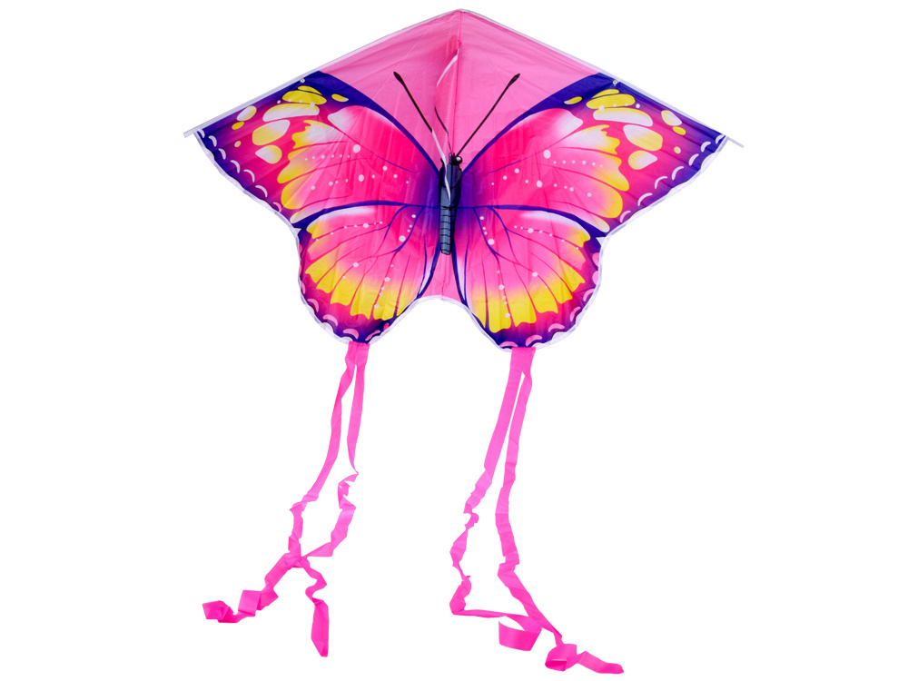 Kolorowy latawiec w kształcie pięknego motyla to idealna propozycja dla dzieci i całej rodziny na wspólne spędzanie czasu na świeżym powietrzu. Duży latawiec z długim, powiewającym ogonem zachwyca intensywnymi barwami oraz kształtem przypominającym prawdziwego motylka. Piękna grafika oraz realistyczne skrzydła sprawiają, że lot tego modelu wygląda niezwykle efektownie.