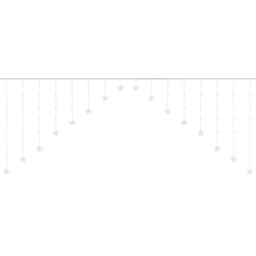 sPEZIFIKATIONEN -Anzahl der Modi: 8; Art der Beleuchtung; LED; Farbe des Lichts: multicolor; Farbe der Leitung: transparent; Anzahl der LEDs: 136; Wasserdichtigkeitsklasse: IP44; Fernbedienung: ja; Stromversorgung: Netzstrom; Leistung: 1,2 W; Größe eines Sterns: 9 cm; Gesamtlänge: 535 cm; Länge des Eiszapfens: 100 cm; Gewicht: 0,388 kg; Gewicht in der Verpackung: 0,494 kg.