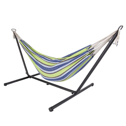 Sie müssen nicht mehr auf die Umgebungsbedingungen Rücksicht nehmen und einen geeigneten Platz für Ihre Hängematte suchen - sie wird mit einem Metallgestell geliefert und kann praktisch überall im Handumdrehen aufgestellt werden.