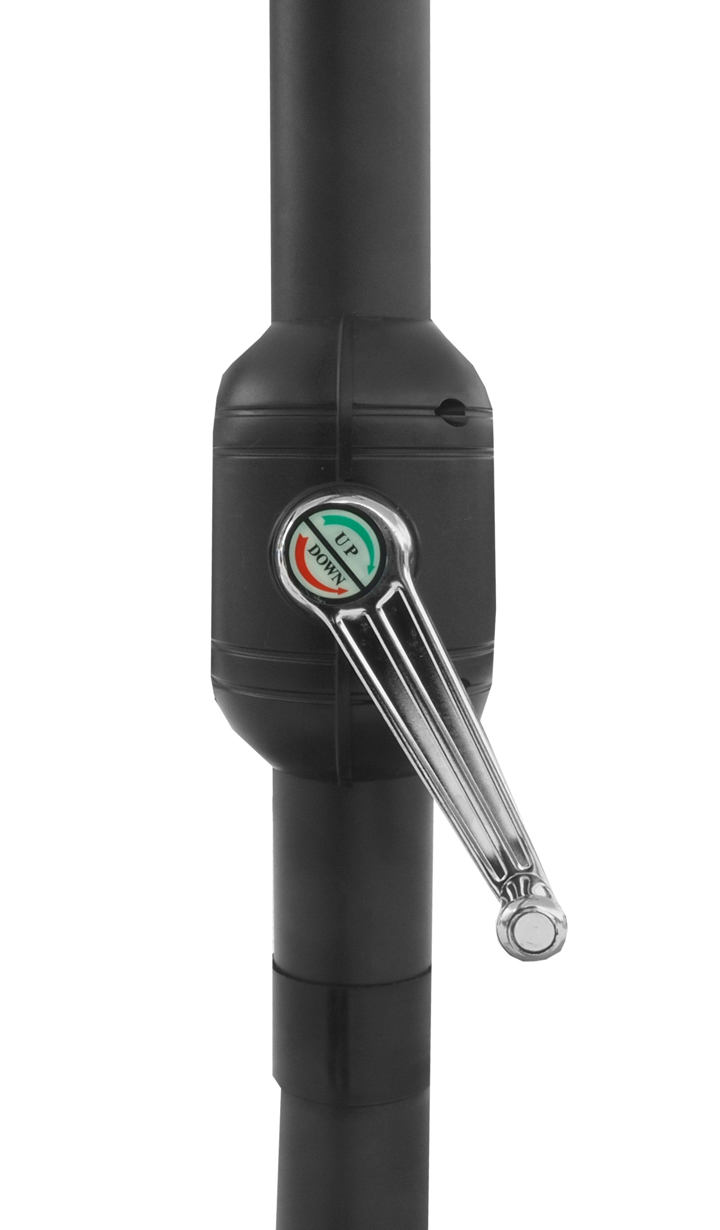 Ein einfacher Kurbelmechanismus sorgt für eine leichte Handhabung beim Auf- und Zusammenklappen des Sonnenschirms.
